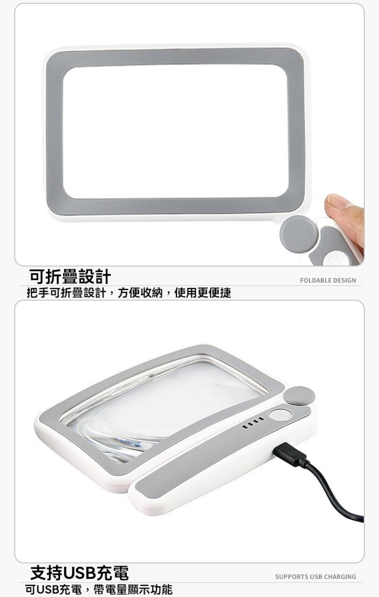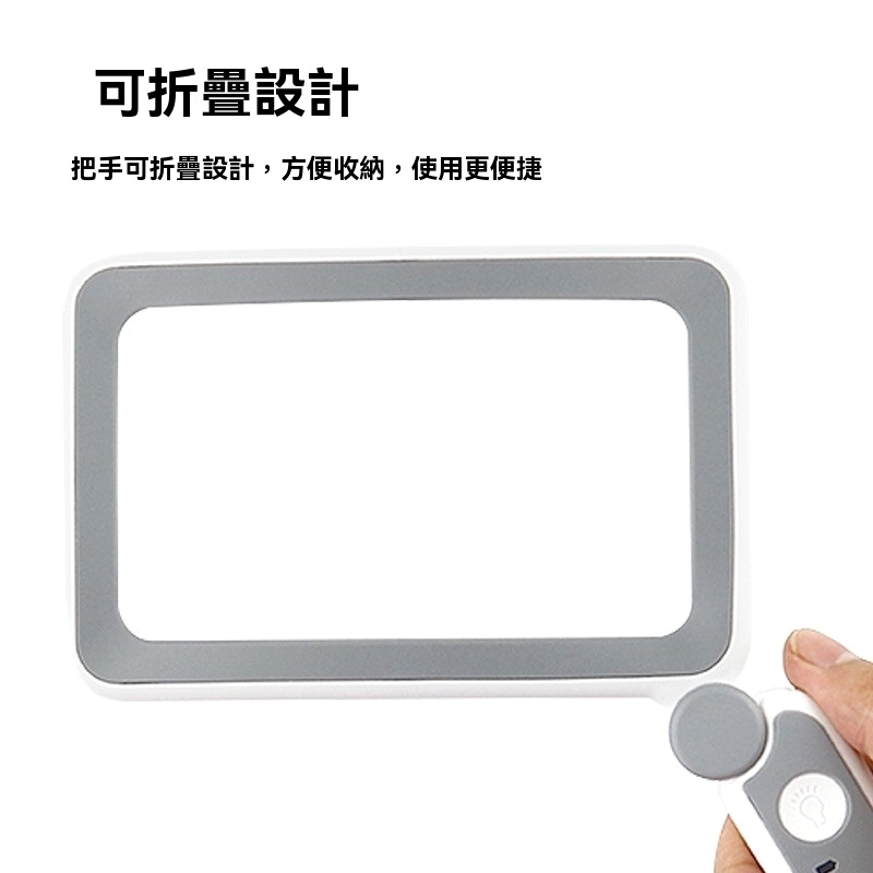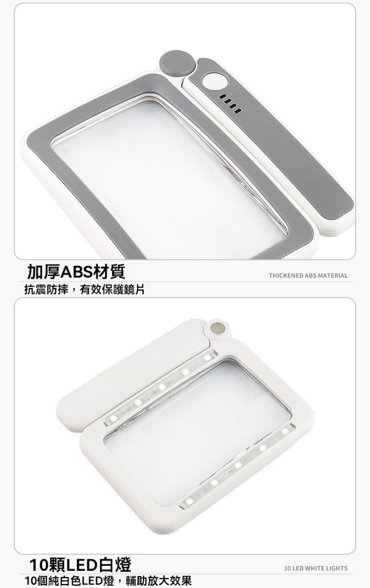 折疊方形手持放大鏡超亮10LED 三檔調光 USB充電