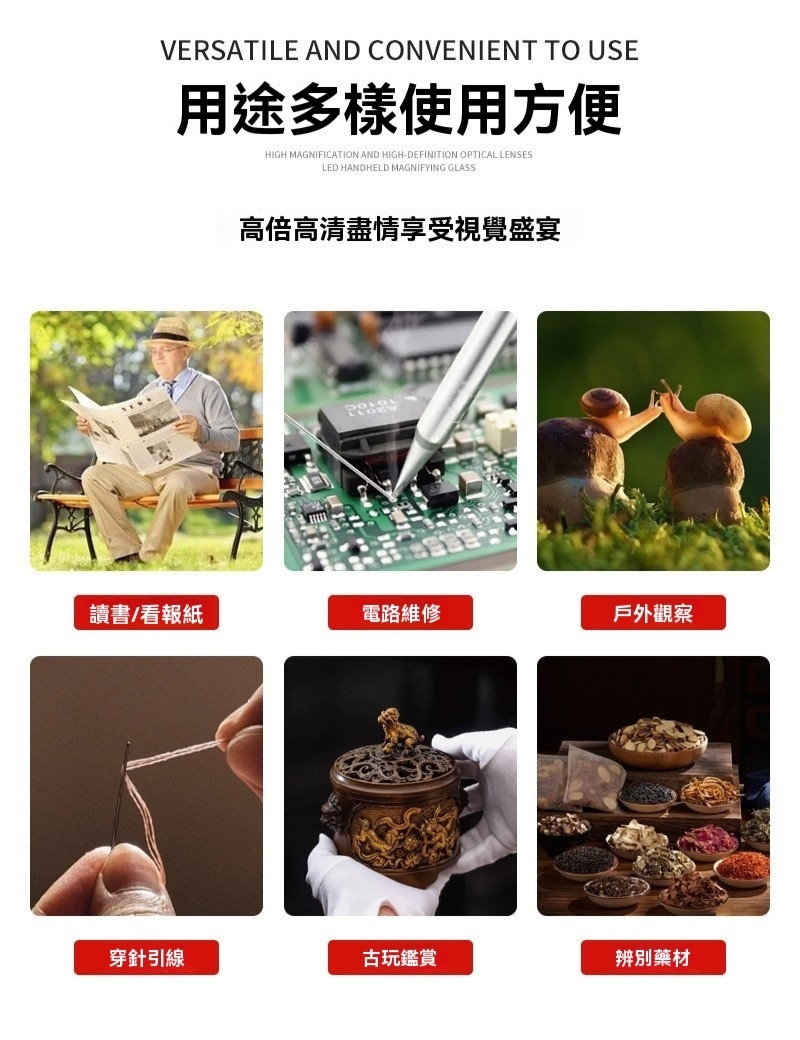 這款折疊方形手持放大鏡,配備超亮10LED燈,讓你在任何環境下都能清晰觀察細節。