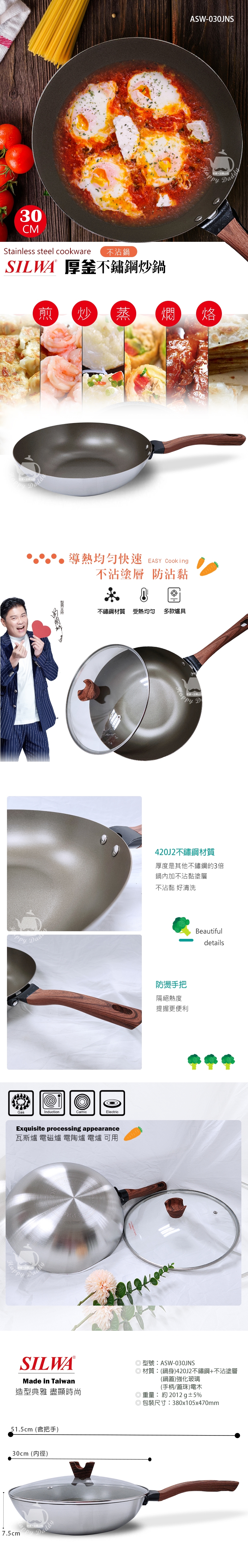 適用鍋具:瓦斯爐、電陶爐、電磁爐、電爐