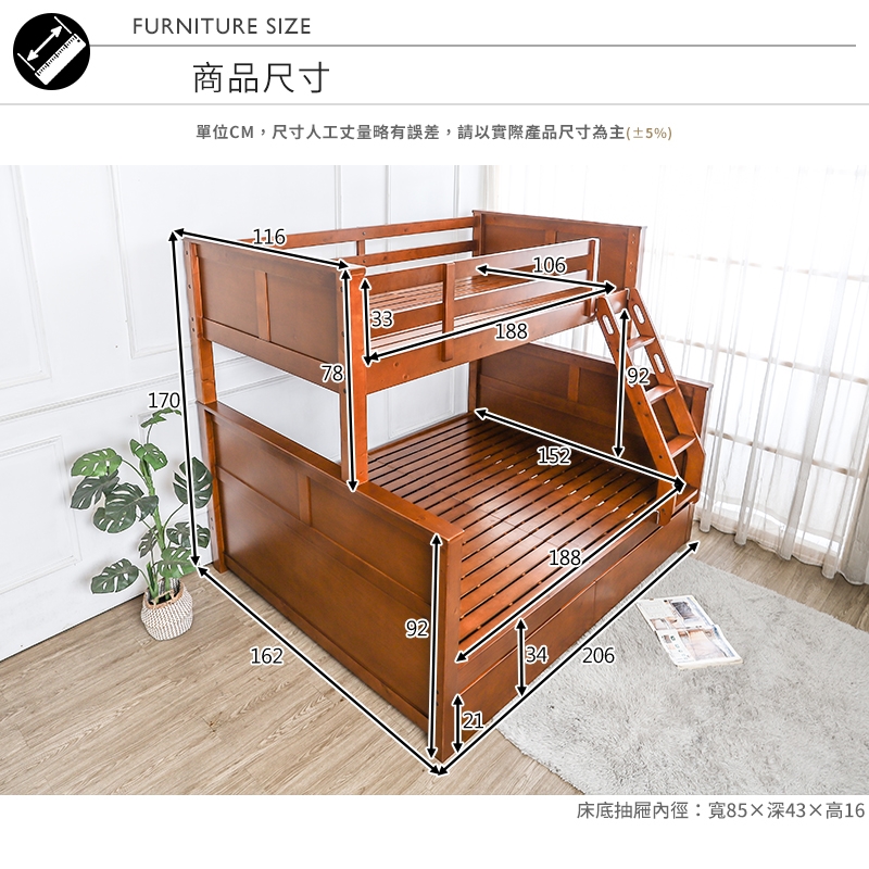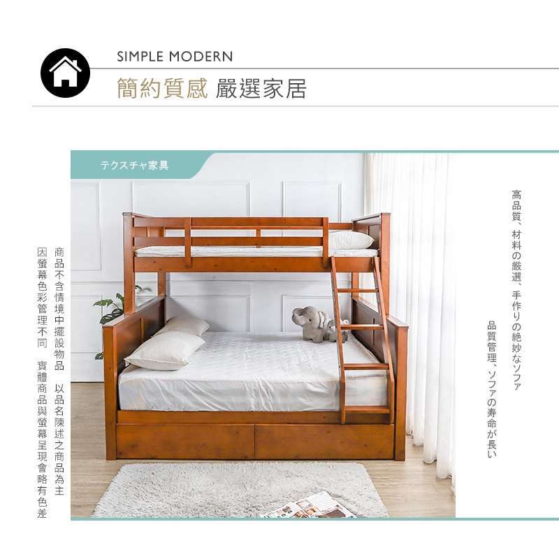 選用紐西蘭松木實木及耐重板材精心製作,結構穩固不易變形!
