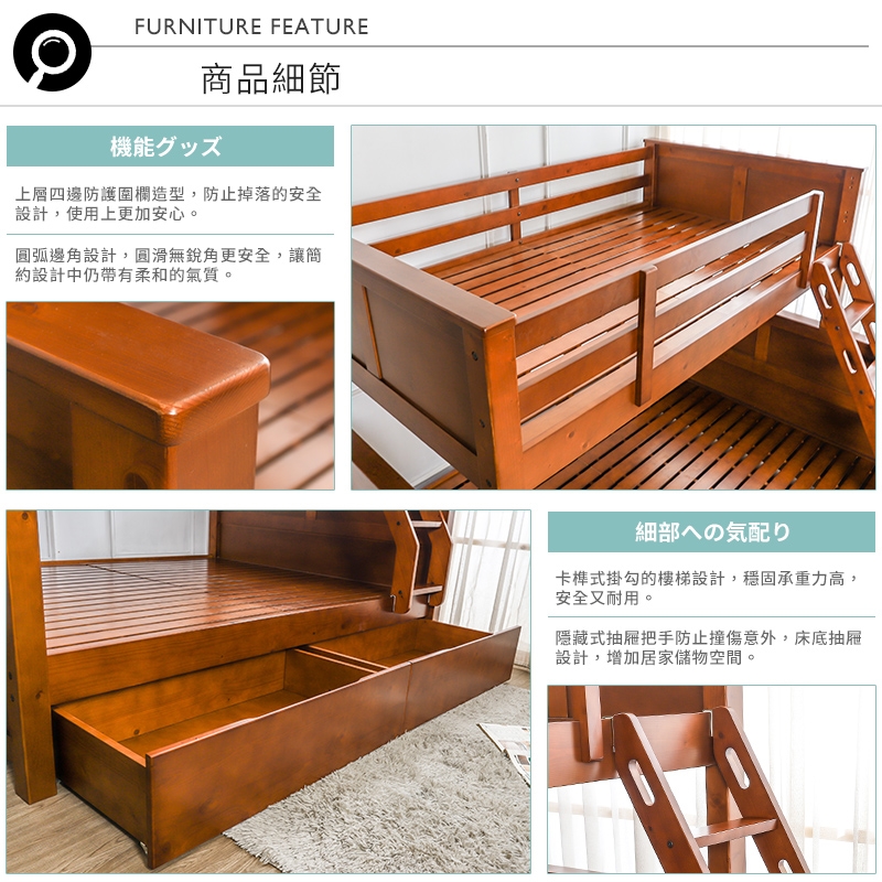 上層採用防掉落加高圍欄設計,兼顧安全與美觀,睡得更安穩!