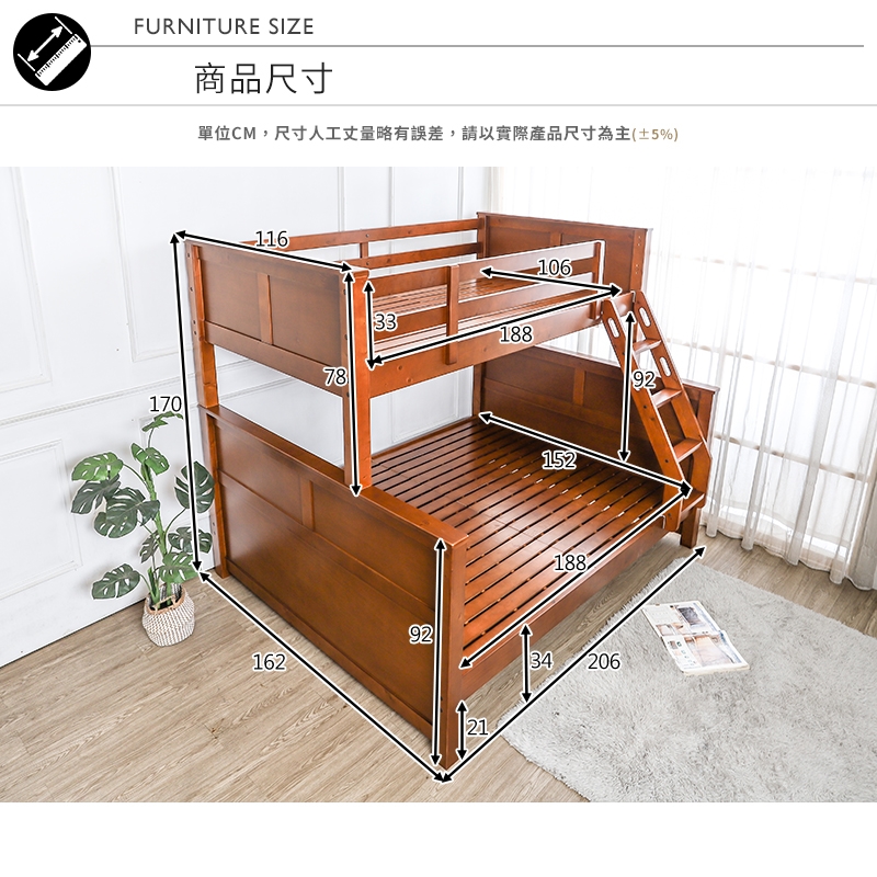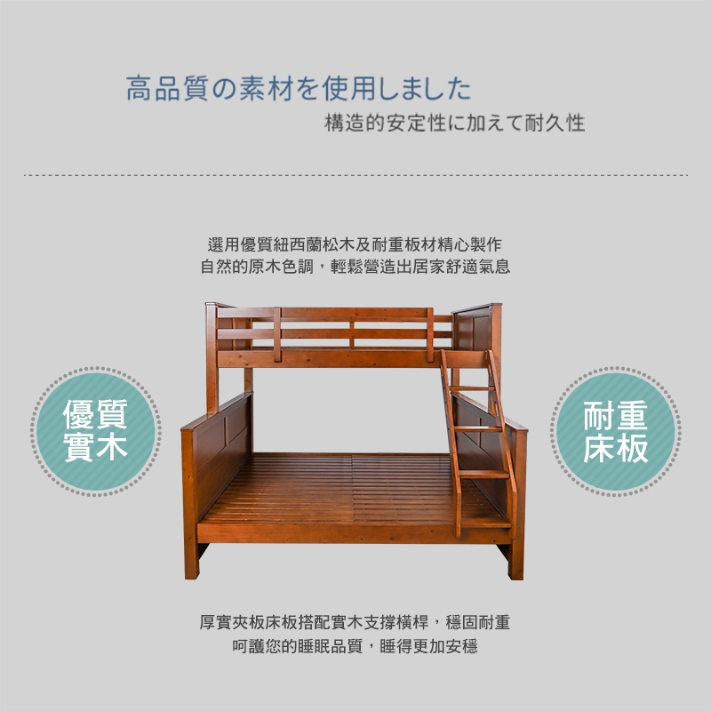 選用紐西蘭松木實木及耐重板材精心製作,結構穩固不易變形!