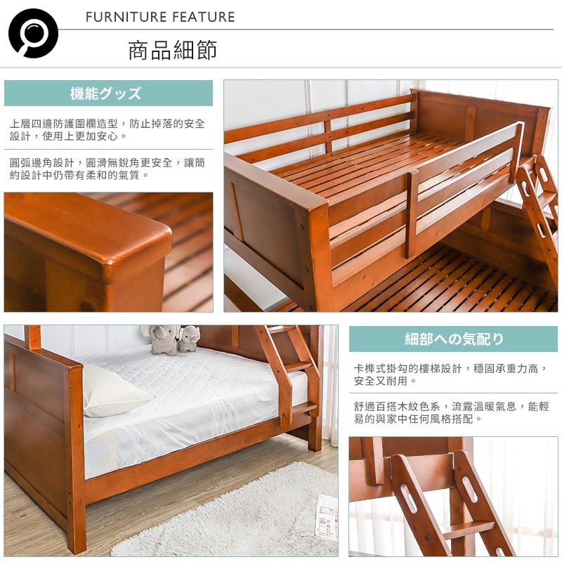 上層採用防掉落加高圍欄設計,兼顧安全與美觀,睡得更安穩!