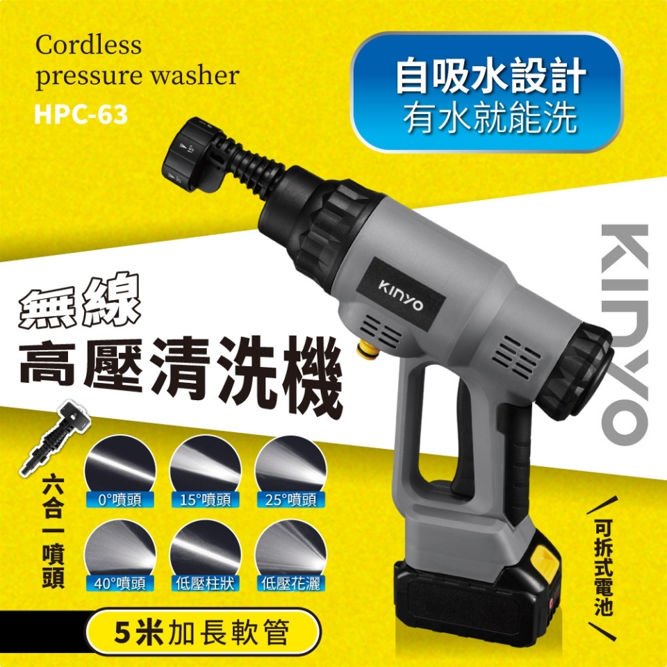 【商品名稱】KINYO 無線高壓清洗機 HPC-63