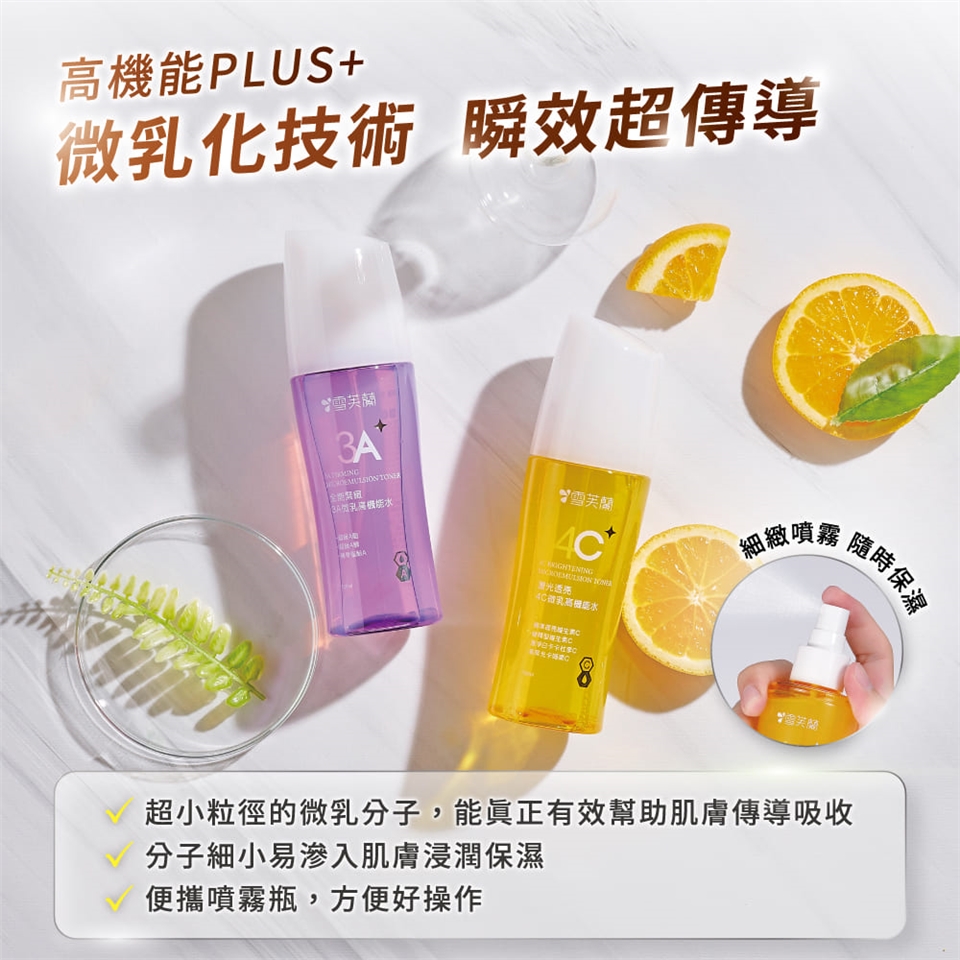 超小粒徑的微乳分子,能真正有效幫助肌膚傳導吸收,分子細小易滲入肌底浸潤保濕,並減緩肌膚水分流失,持續性提供浸透感與滋潤度,使膚觸更柔滑細緻。