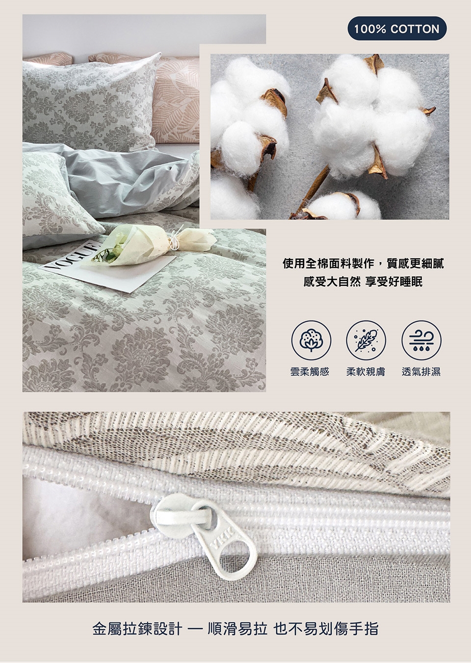 ◆ 具純棉的空氣感與蓬鬆感,有良好的吸汗透氣功能,一年四季都能舒服地使用。
