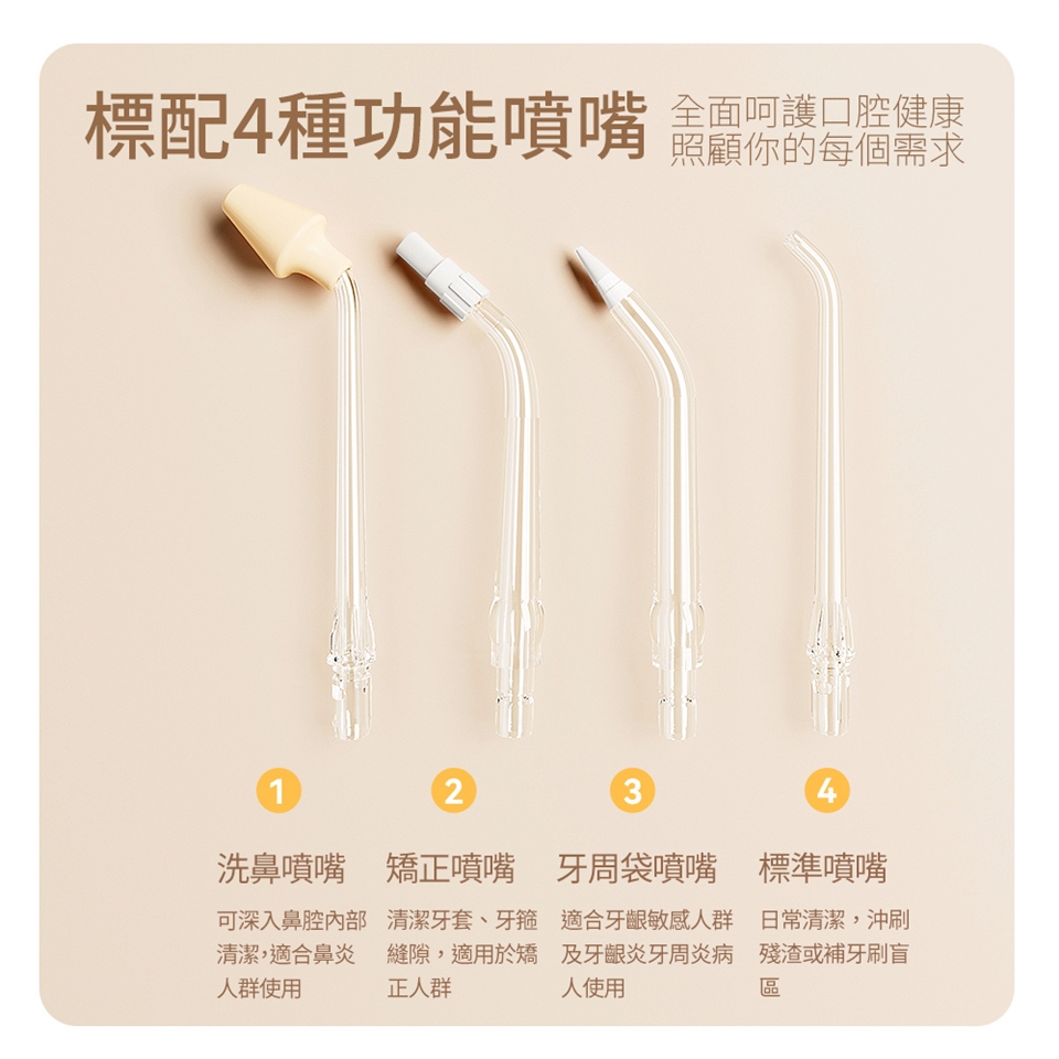 ▪搭配4款專屬噴嘴,專業護理 應對多種需求