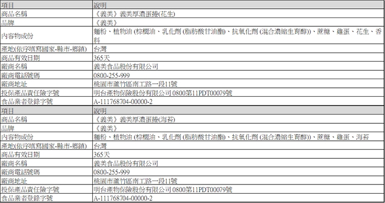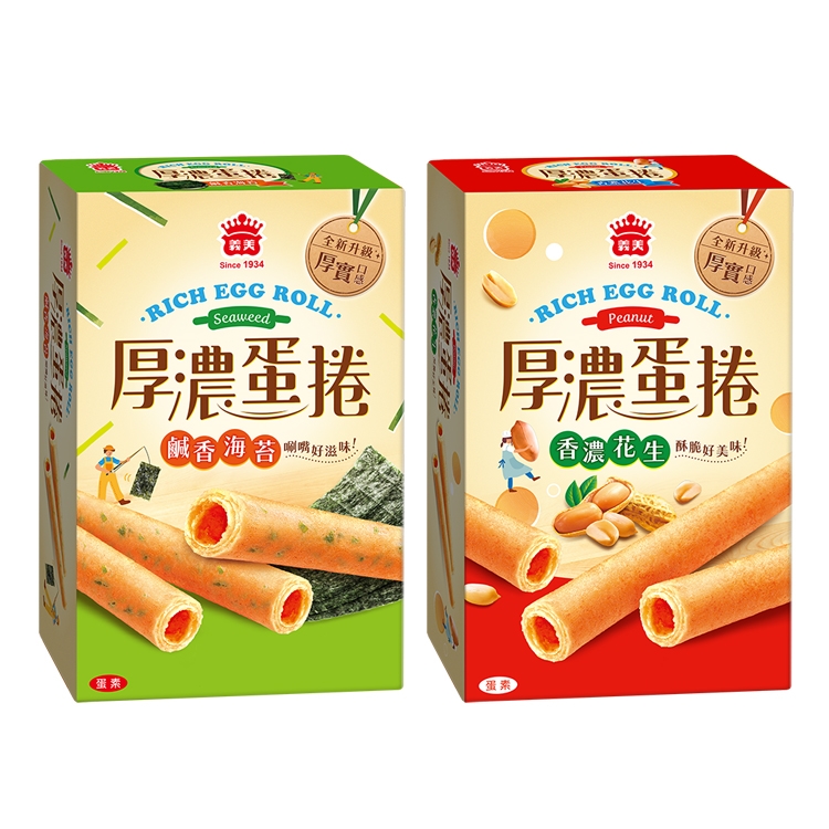 ★ 義美全新厚濃蛋捲,厚度升級,層層酥鬆的餅體自然散發濃醇的蛋香氣,放入口中輕輕一咬即可感受厚實口感,搭配香濃花生,酥脆好美味!