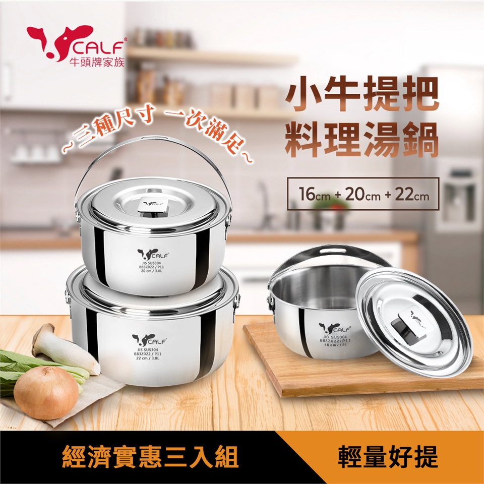 Buffalo牛頭牌/提把料理鍋三入組/提把鍋/提鍋/IH/電磁爐 /露營鍋/泡麵鍋/鍋子/鍋蓋/不鏽鋼湯鍋/附蓋子鍋/wmf湯鍋/不銹鋼鍋子