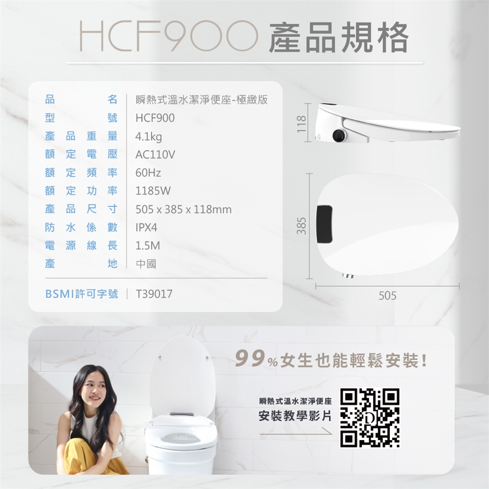 DIKE HCF900WT 瞬熱式溫水潔淨便座-極緻版