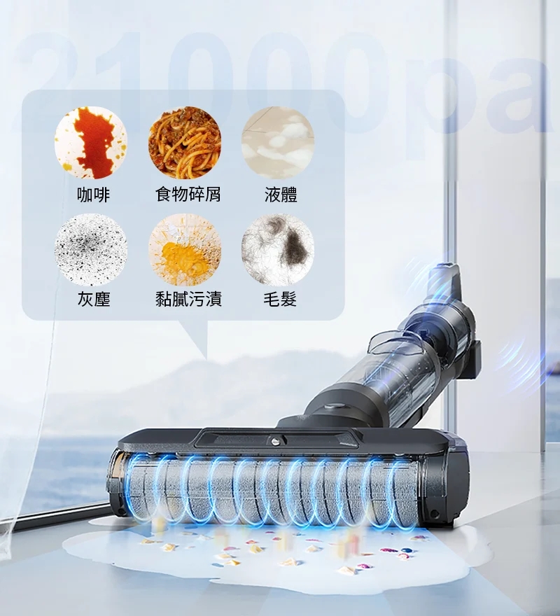 前後雙滾刷加倍清潔效率,吸塵、拖地一次到位