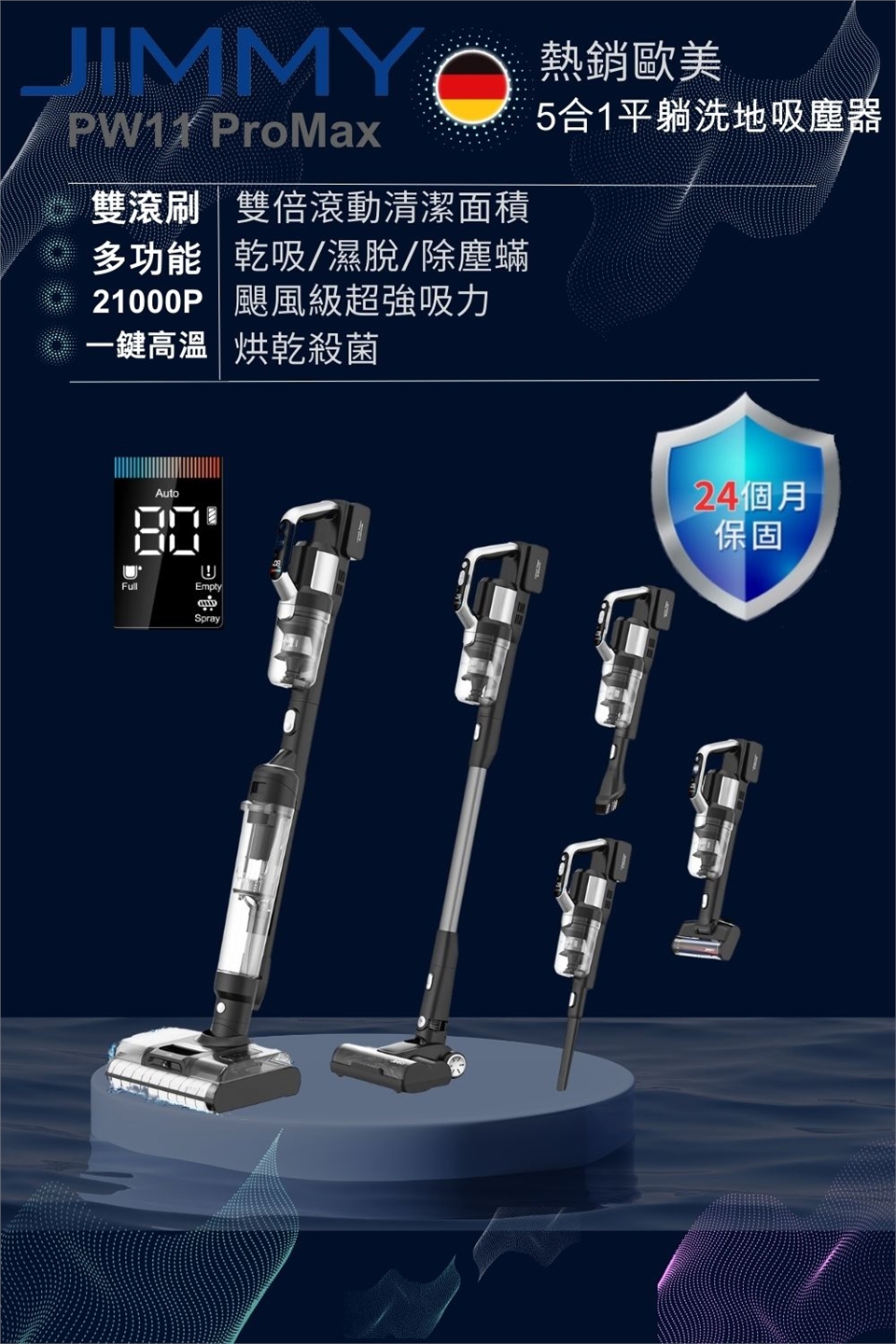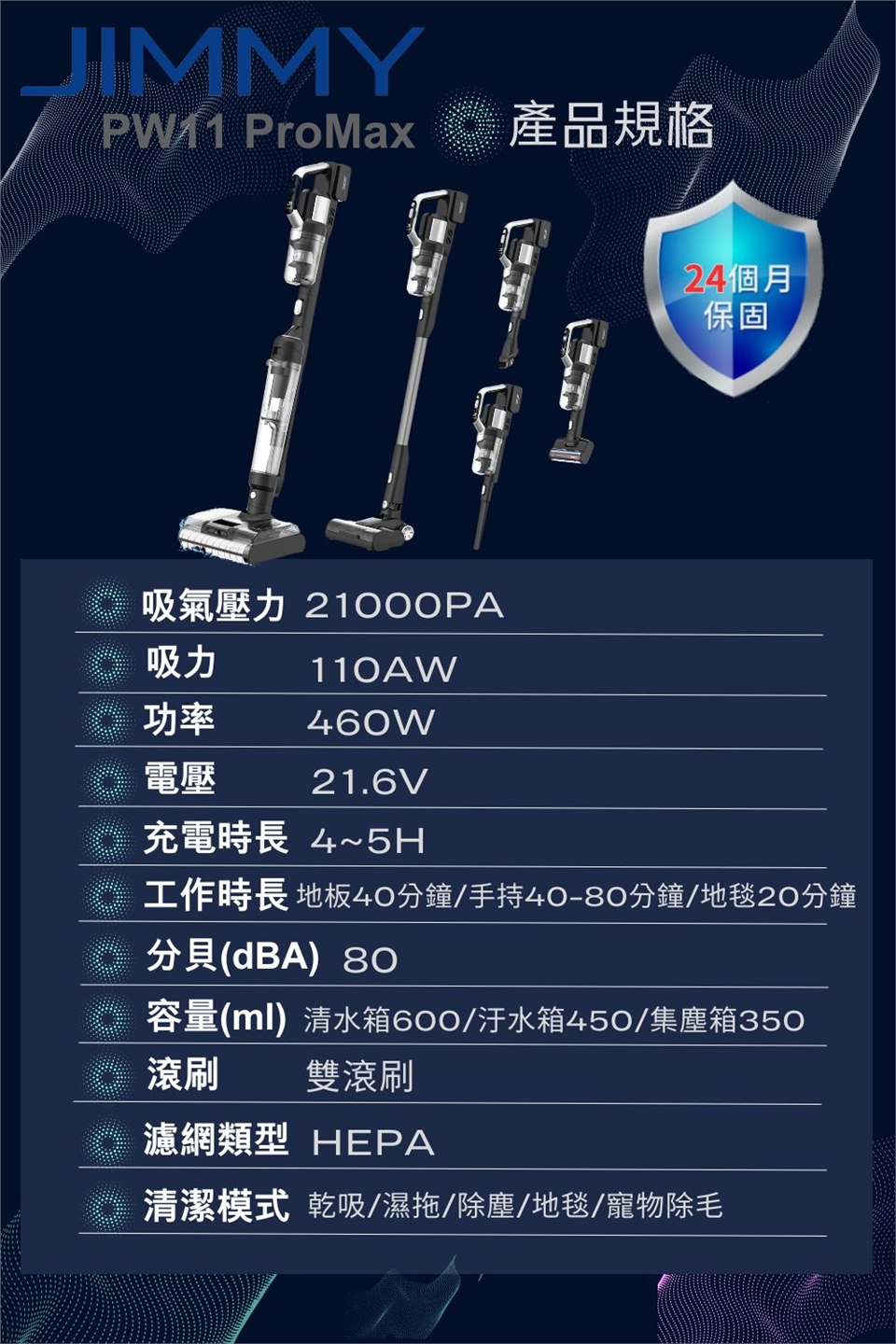 長效電池續航:洗地模式43分鐘、乾吸模式80分鐘