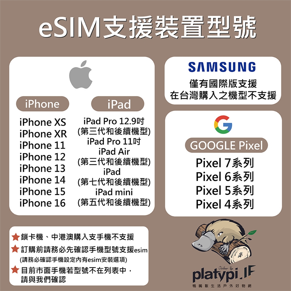 ※網卡類型: 適用於ESIM裝置(購買前請務必確認是否為適用手機)
