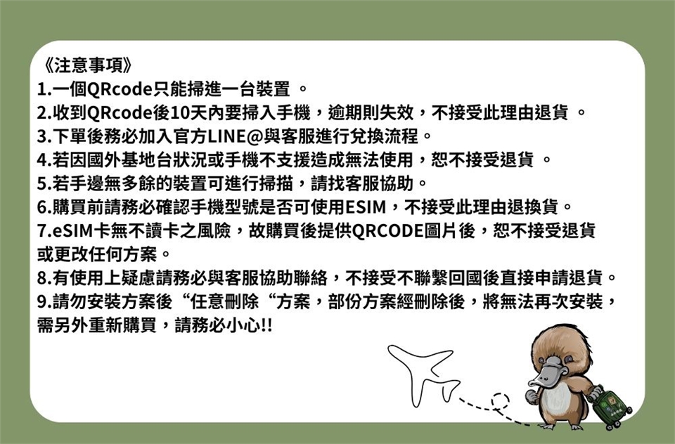 收到商品後請務必加入官方Line@,進行開通網卡流程。