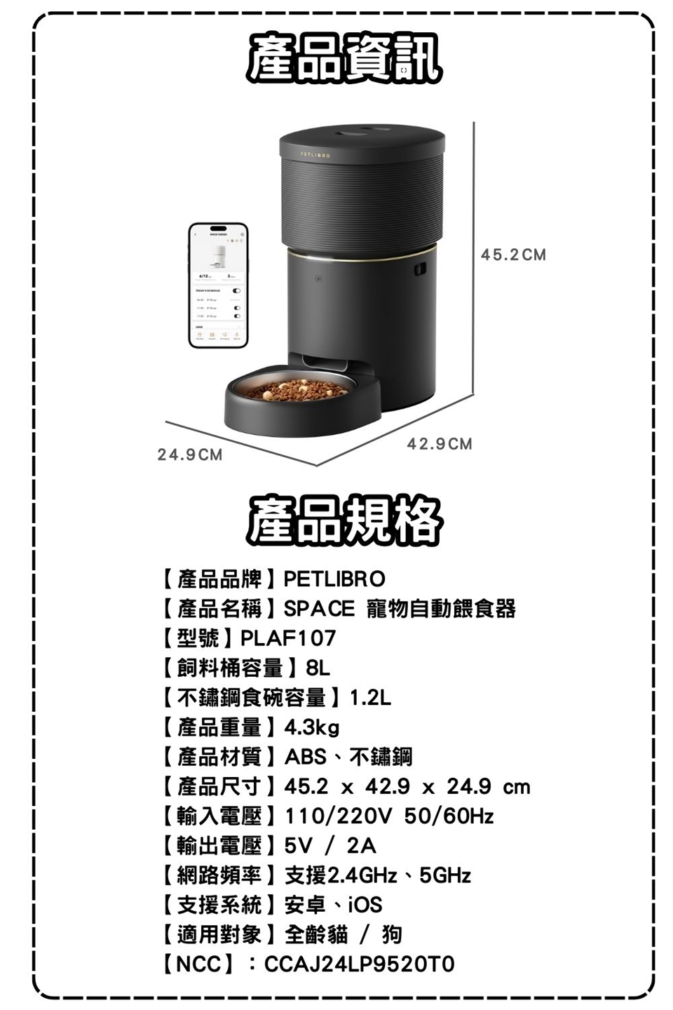 需搭配PETLIBRO應用程式使用與設定。