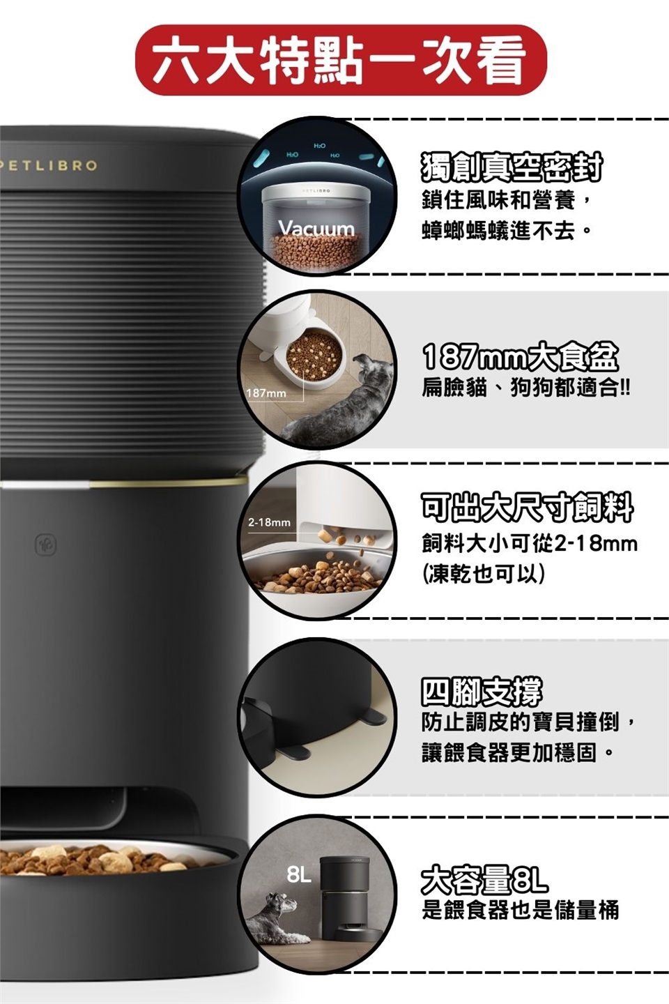 - 超大8L容量 滿足多寵家庭