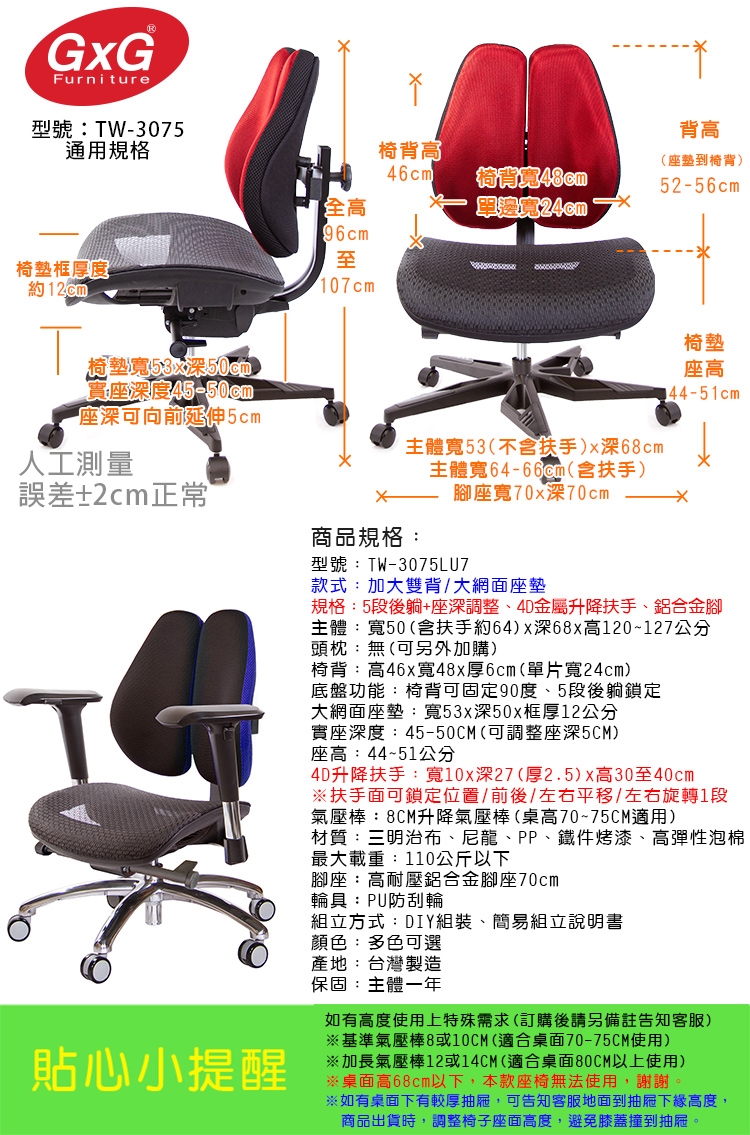 購買注意事項:本座椅高度,均以搭配標準桌高70~75CM使用。