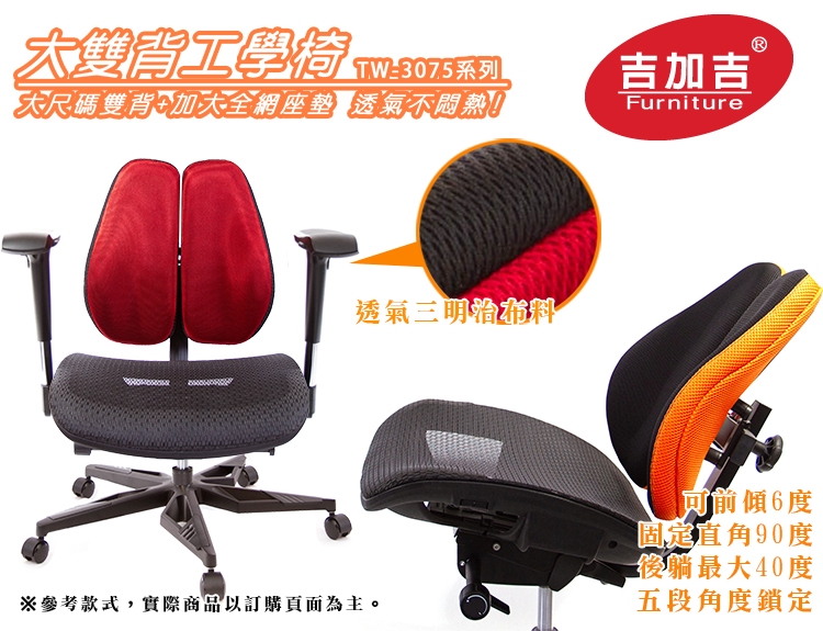 本款TW-3075系列,可調整座墊深度,能向前增加座深5cm間距,實座深度45-50CM,身高較高者,能配合腿長調整,讓高個子也能使用的舒適。