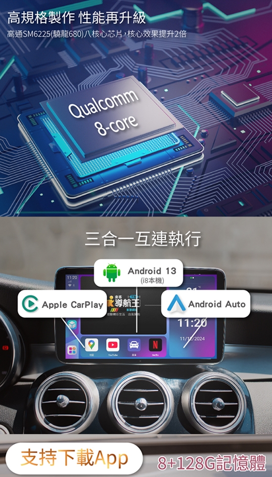 - 可撥放Youtube/Nelflix/Google map神盾/導航王/抖音等APP軟體