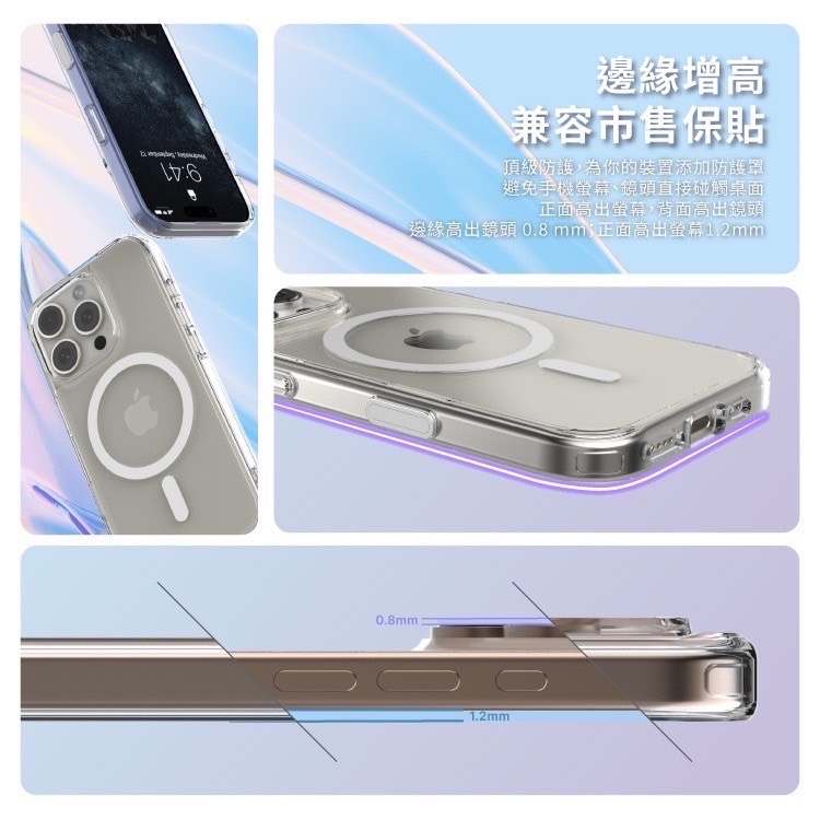 邊緣增高設計,預防手機螢幕與鏡頭放置桌面時直接碰觸表面