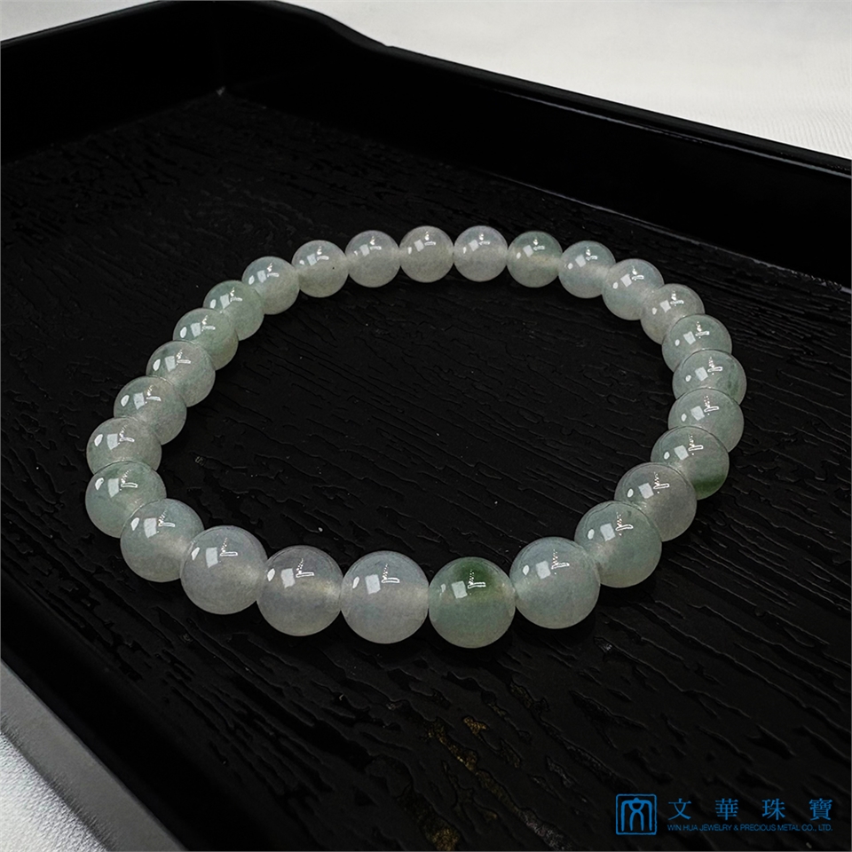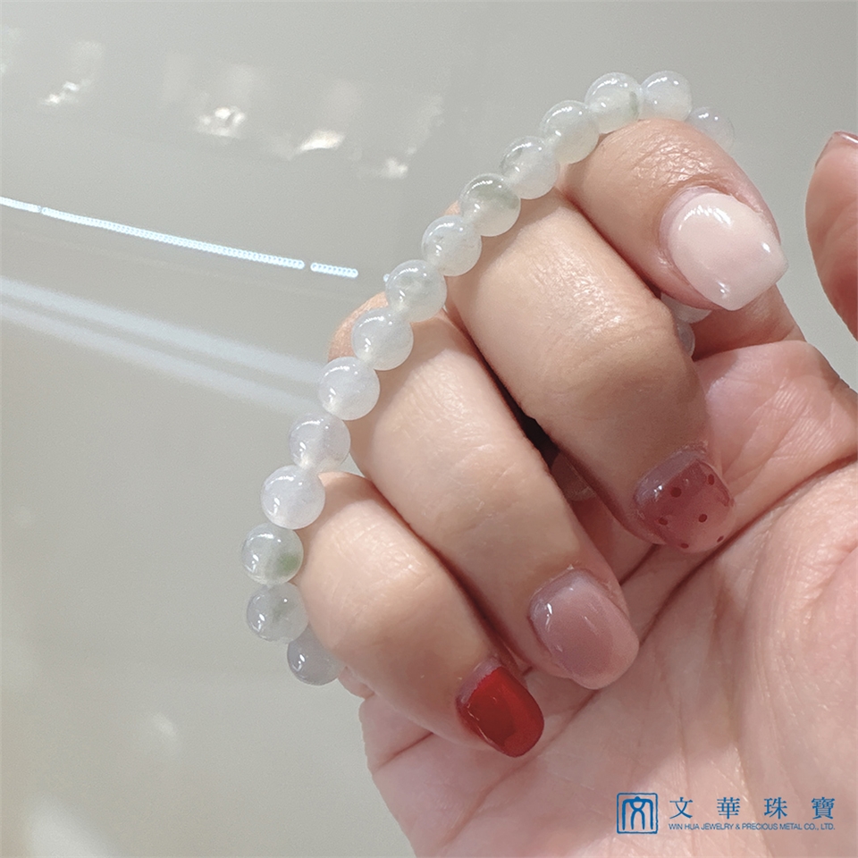 【文華珠寶】翡翠冰芙蓉飄綠玉珠手鍊 約6.7-7mm