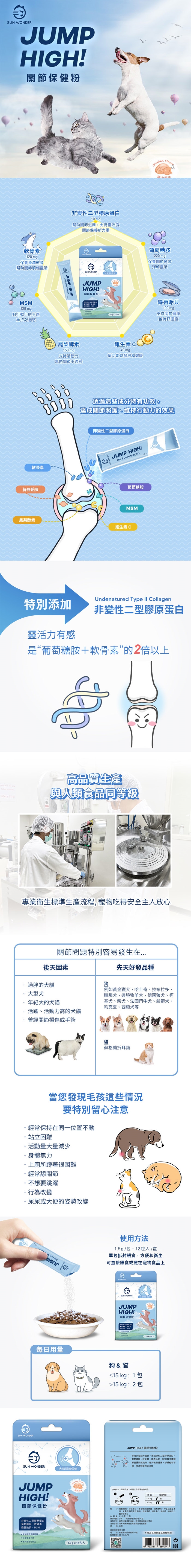 ※食用量建議 : 小於15kg-每日1包 / 大於15kg-每日2包