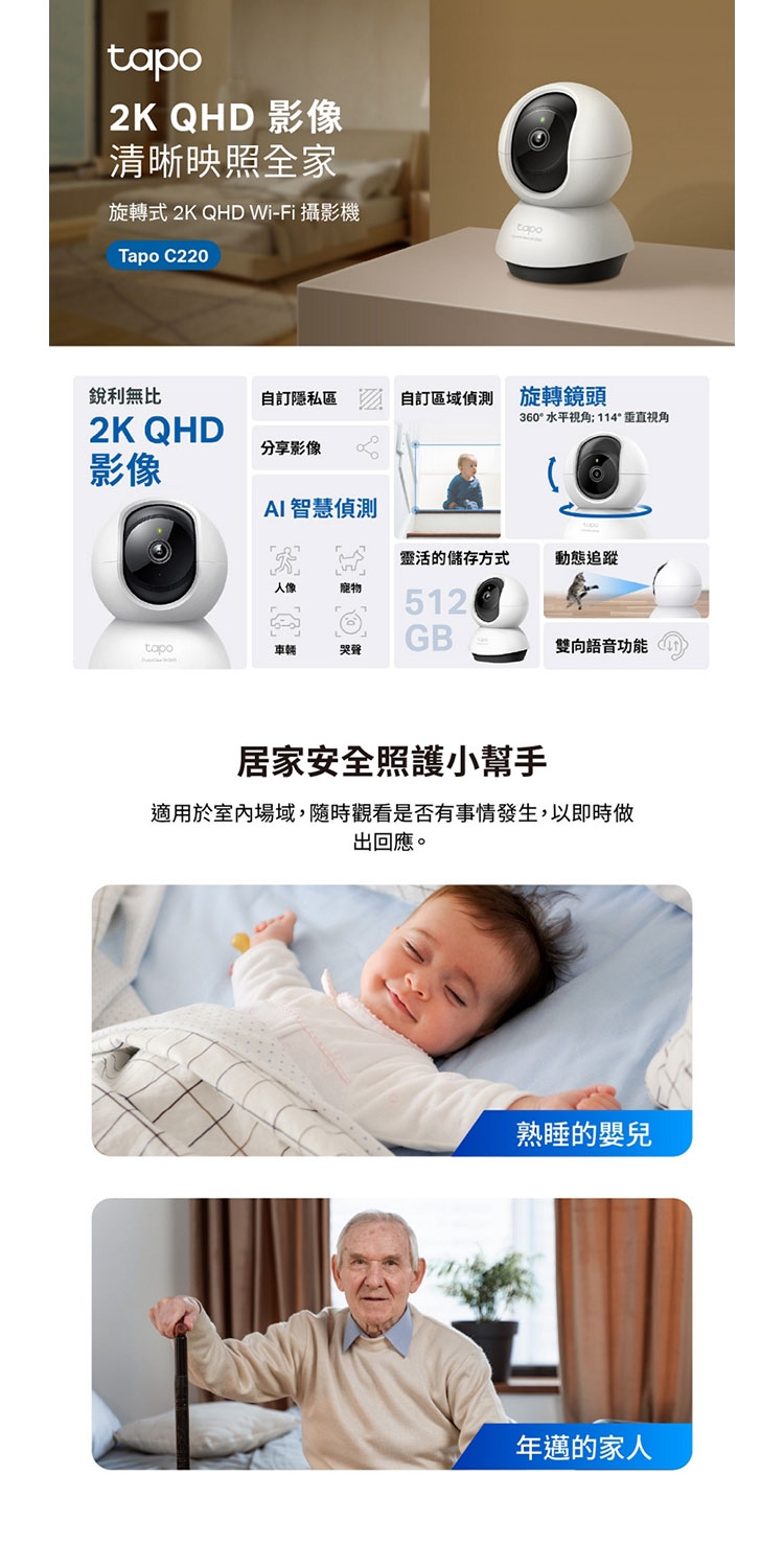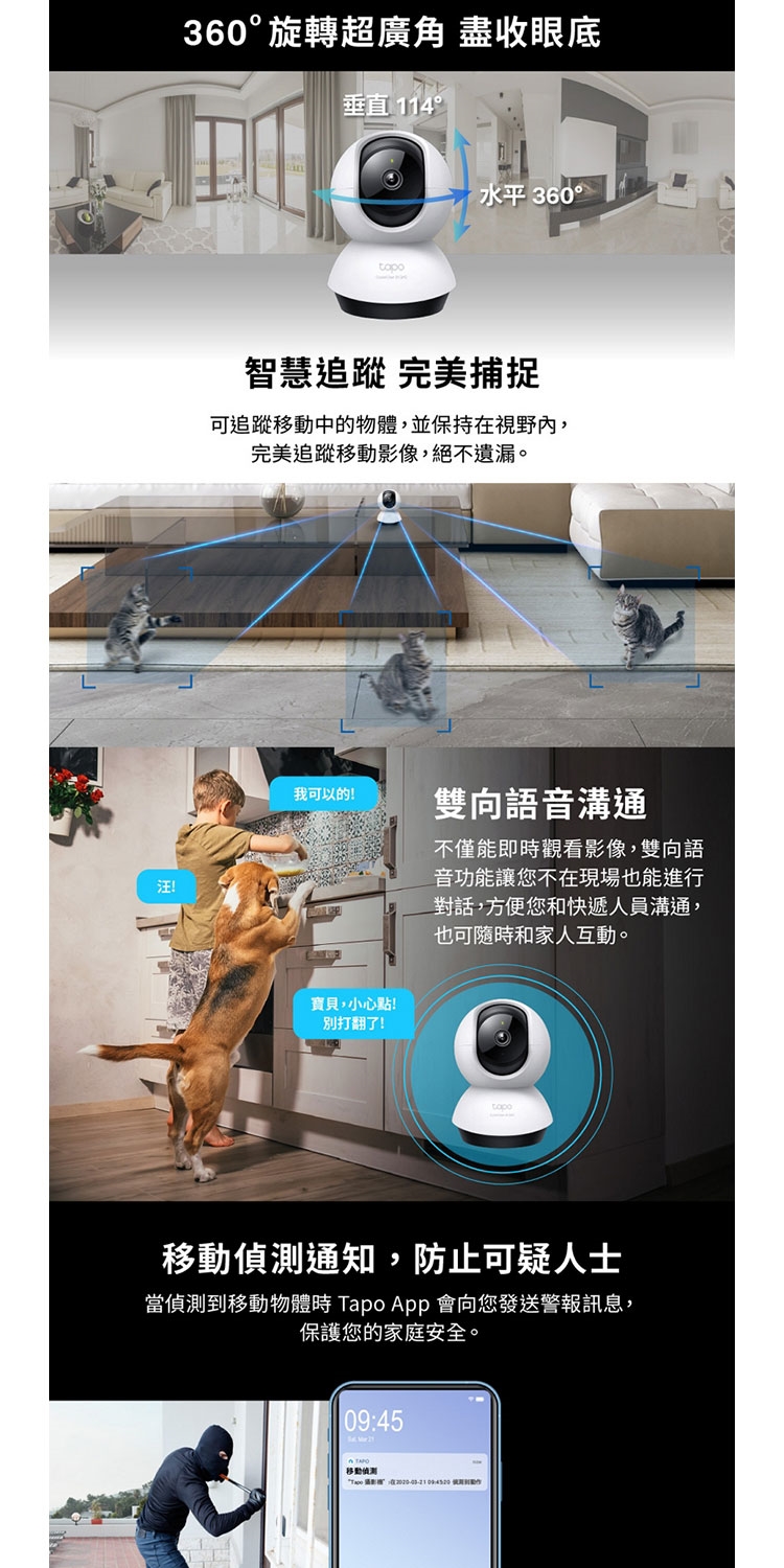 ◆ 寬廣的移動範圍:享受水平360°與垂直114°範圍,讓您覆蓋更多區域