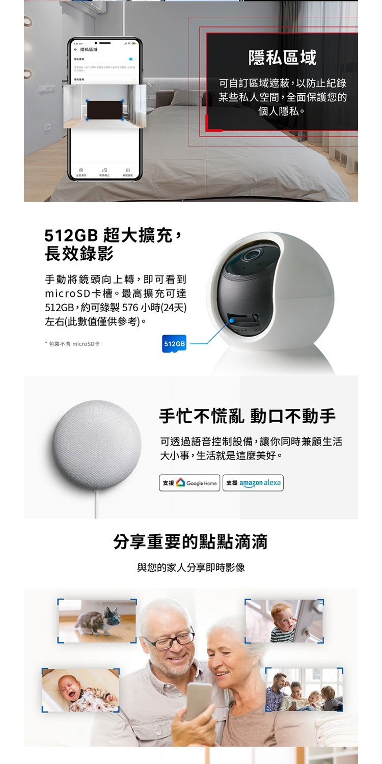 安全儲存 : 將影像儲存在512GB的microSD卡上,安全隱私又便利(microSD卡需單獨購買)