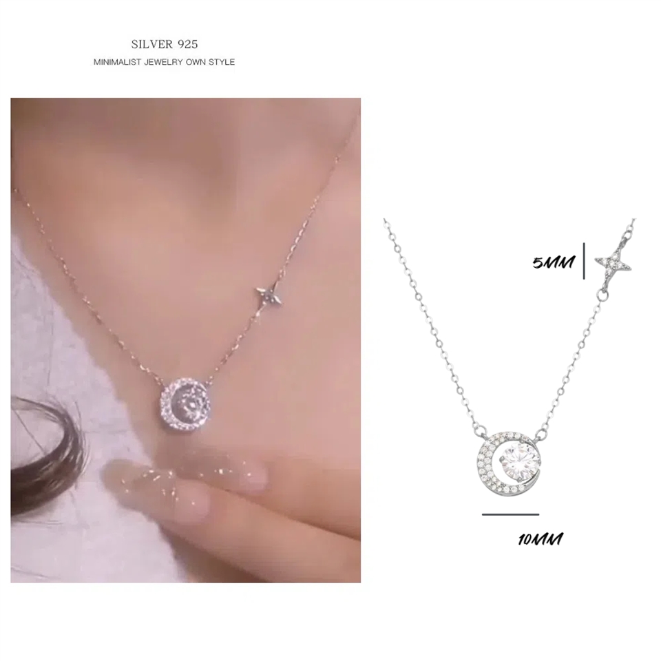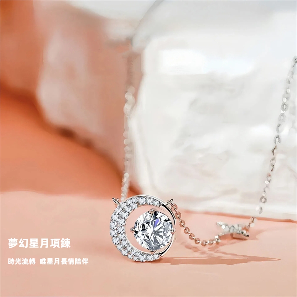 【A&R】S925純銀夢幻星月鋯石鎖骨項鍊