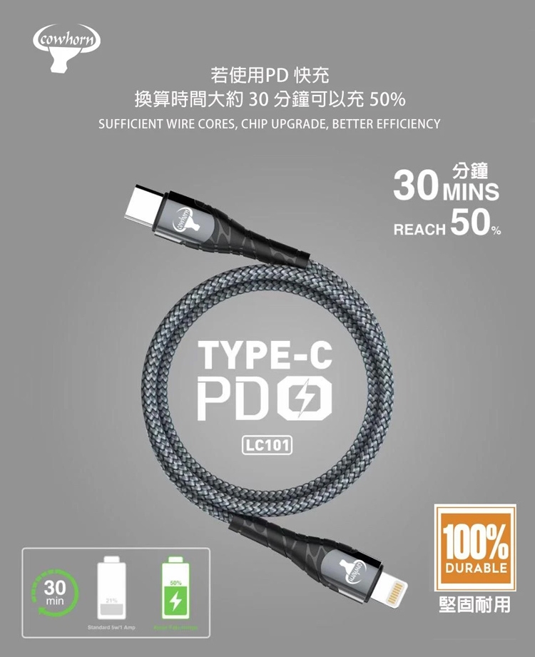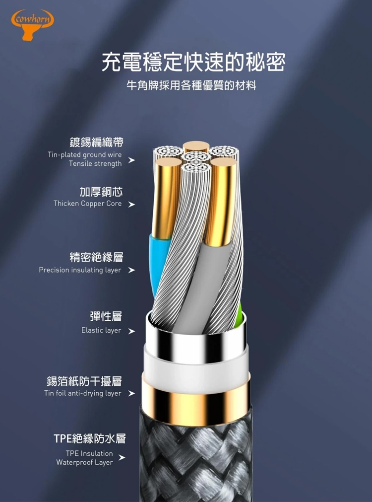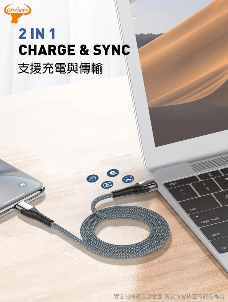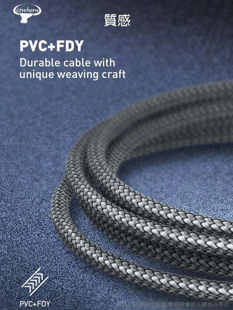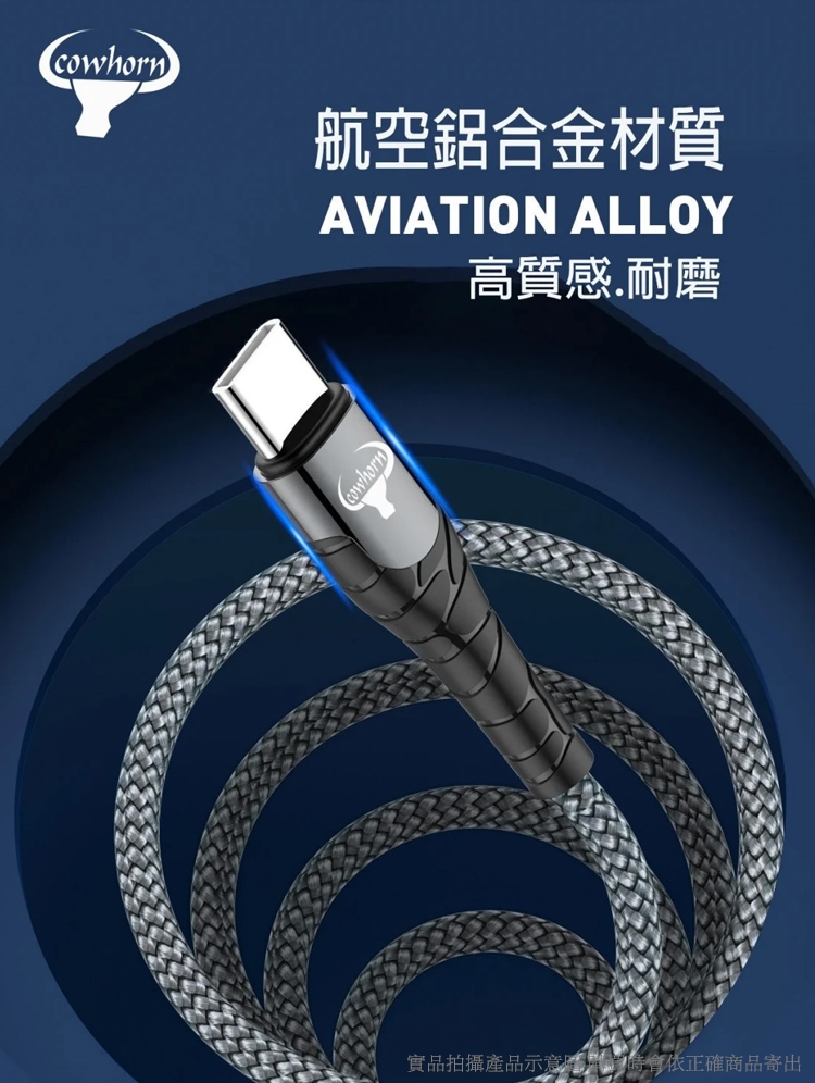 Cowhorn Type-C to Type-C 快速充電編織線-2米
