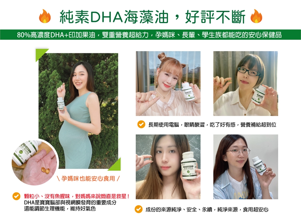 對於孩童、孕期與哺乳中的女性、年長者、素食或菇素飲食者、長時間使用 3C 產品者,以及日常飲食攝取不均衡者,DHA 藻油是最佳補給。