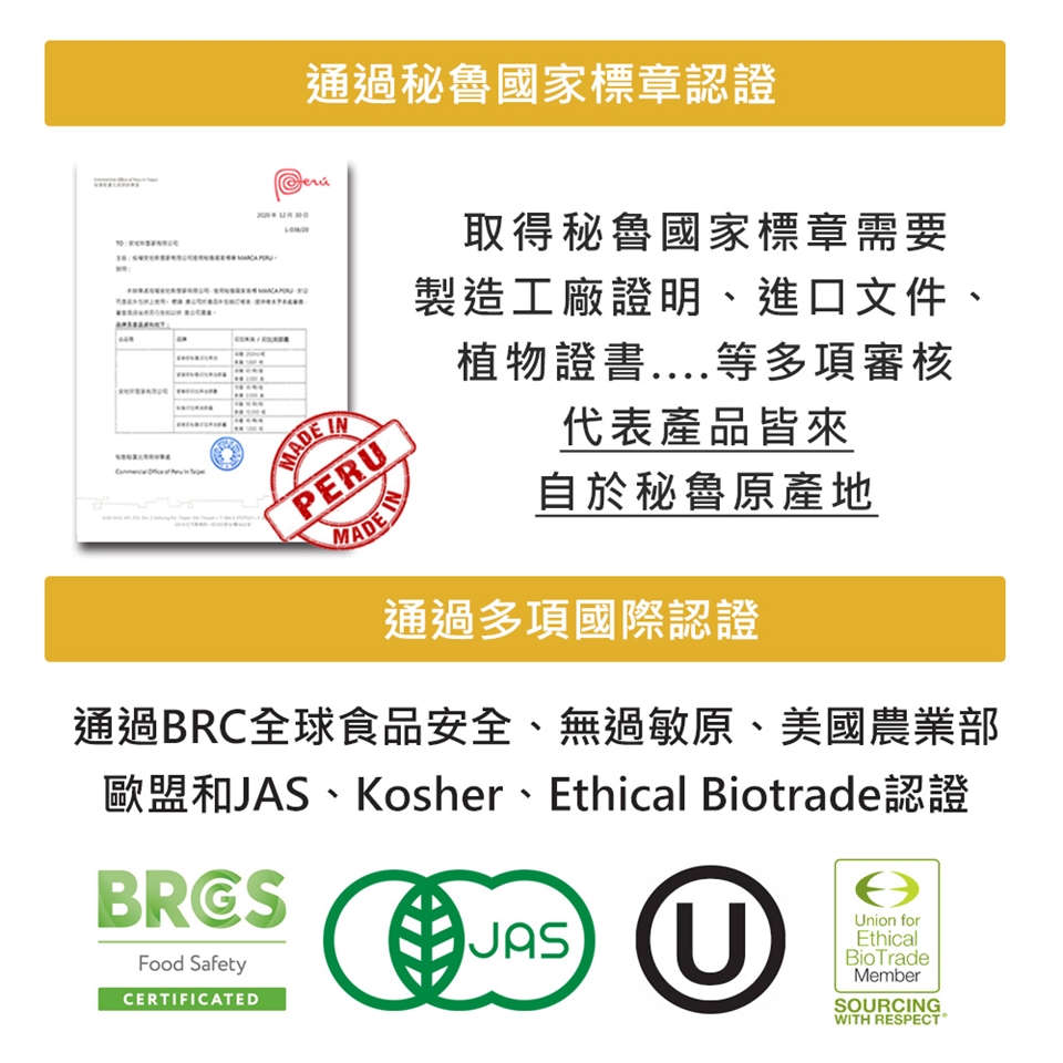 來自秘魯原產地聖馬丁省無農藥莊園野放種植,樹上熟成不落地採收,新鮮特選優良印加果種子,直送工廠脫殼,經由人工挑選最完整優良種子,以德國先進製油設備,低溫慢壓初榨,全程不超過37°C,整個過程無任何溶劑或添加物,氮氣充填保鮮,Omega 3高達48%,通過ISO、GMP、HACCP等多項國際認證。