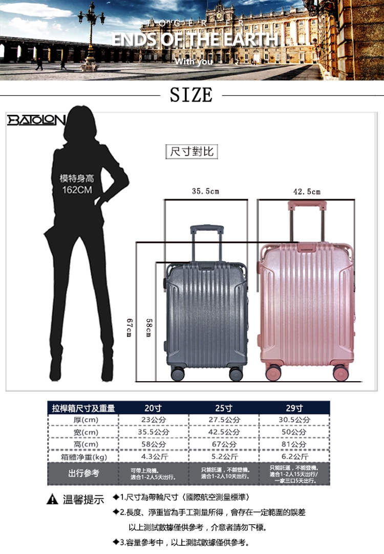 ※ 請勿用拉桿將箱子提起,提起箱子時請用上方或側面的把手;拉桿適用於配合輪子拖行時使用。