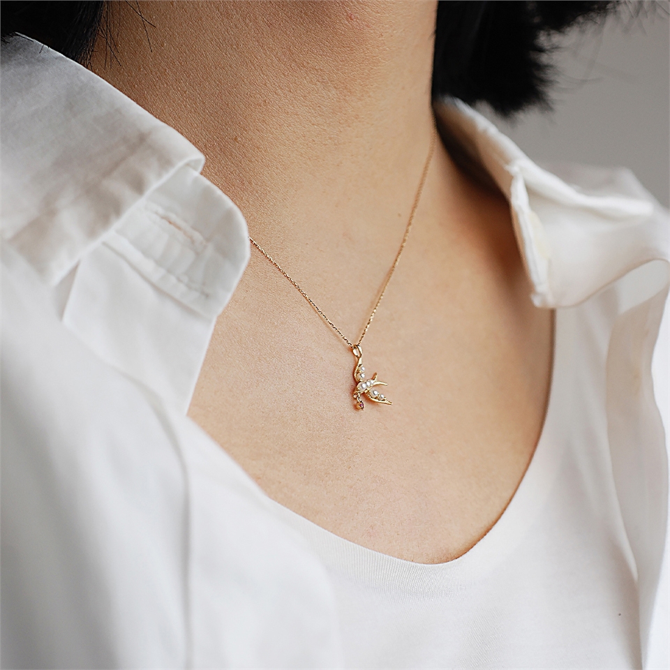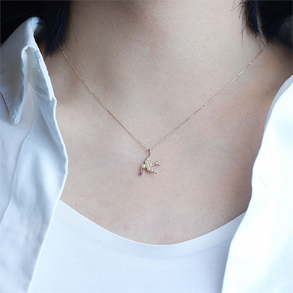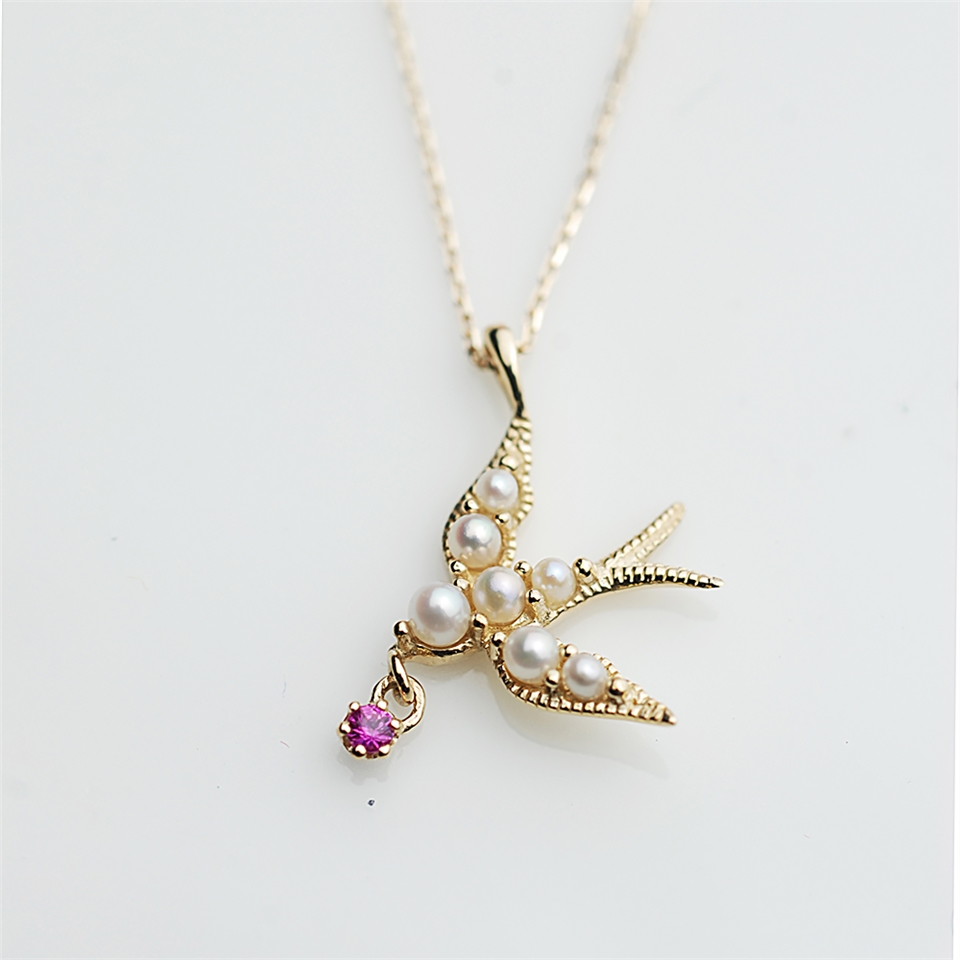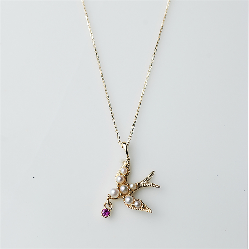 ROKUZAN 叼紅寶珍珠小鳥項鍊