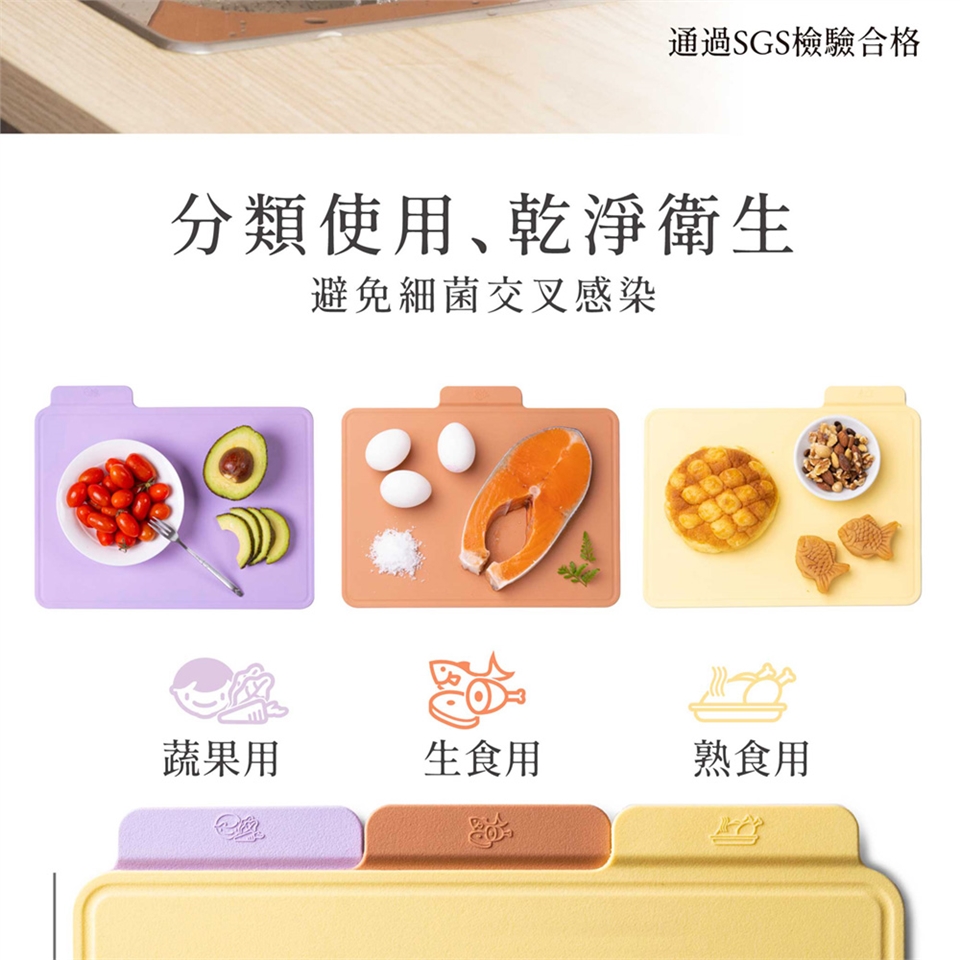 注意事項※三色砧板可放洗碗機清洗,清洗時建議平放避免擠壓變形。