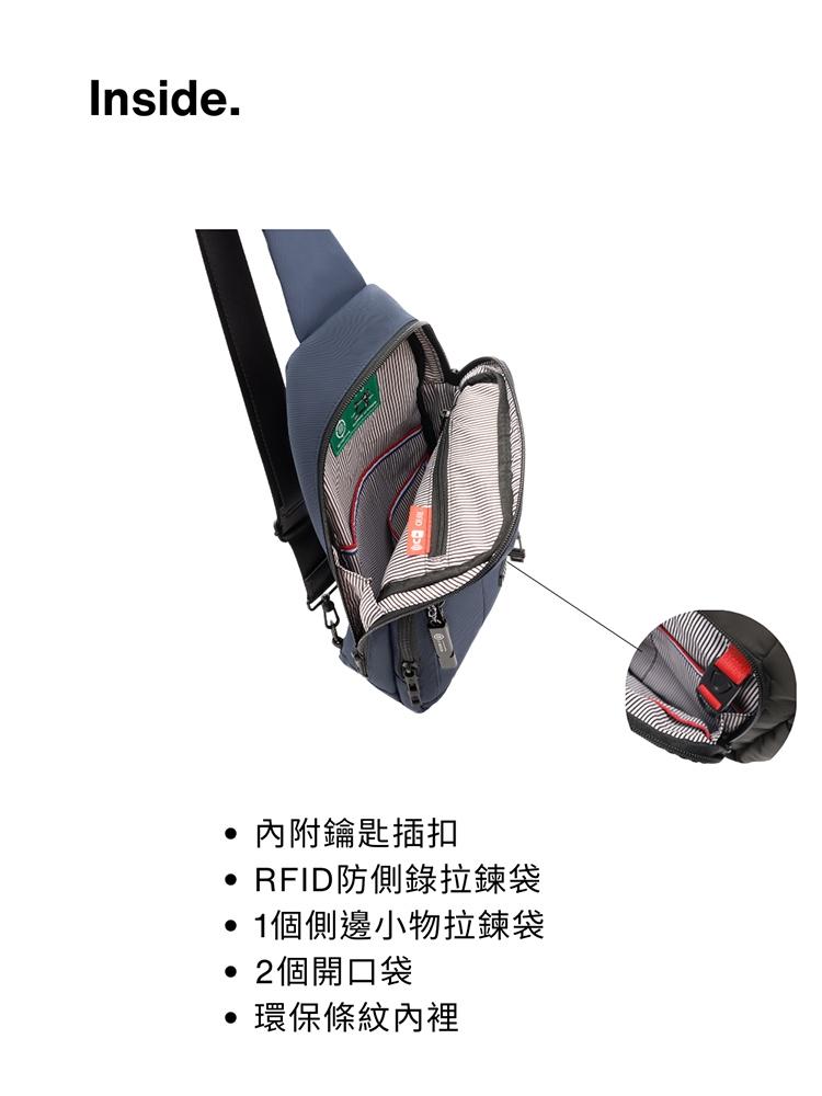 * 1 個 RFID 條信息防盜拉鍊口袋。