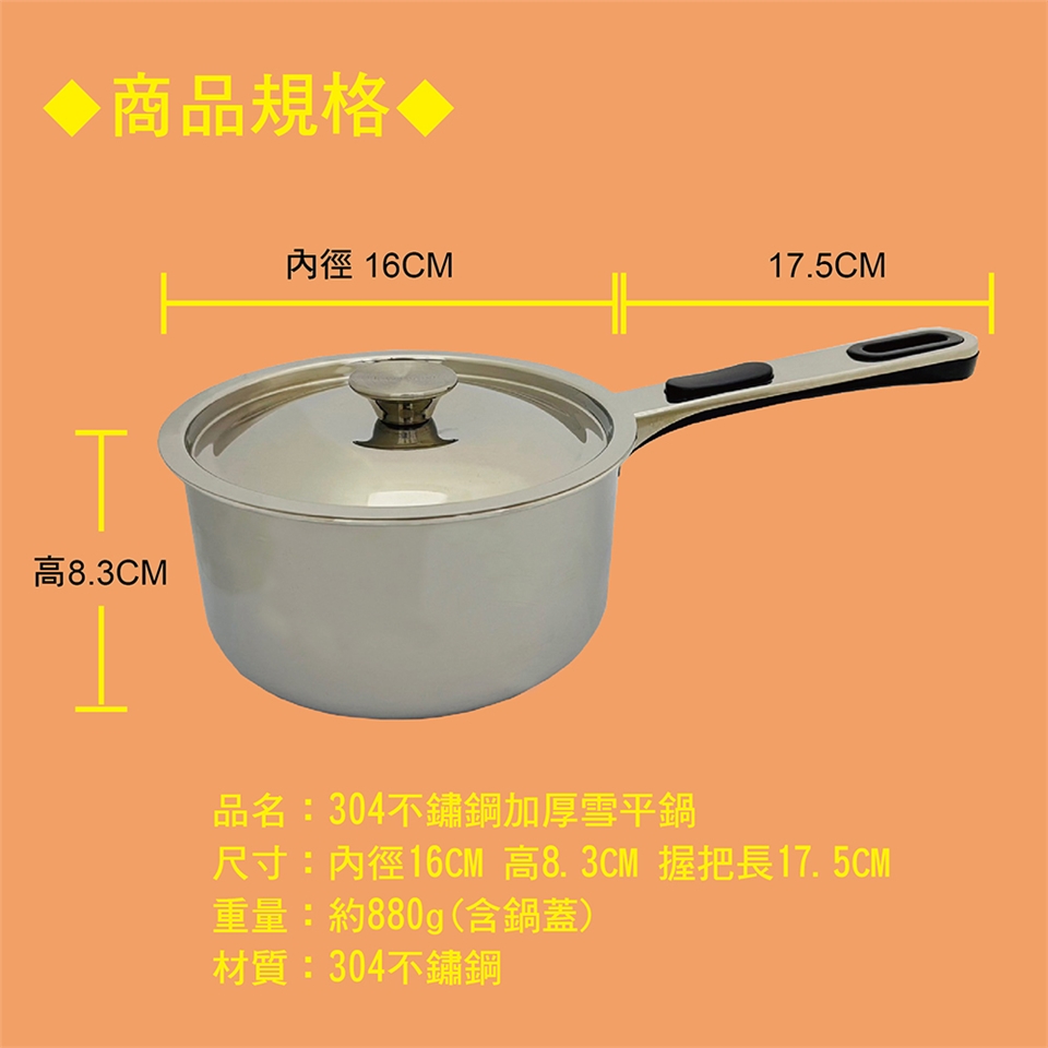 品名:304不鏽鋼加厚雪平鍋
