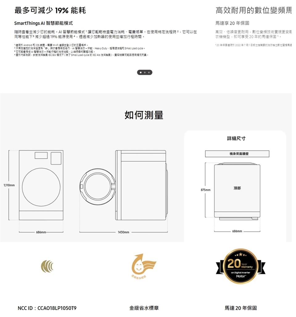 自112年1月1日起, 凡購買本公司 之全系列冰箱,即享有數位變頻壓縮機20年保固,全系列洗衣機,即享有變頻馬達20年保固。