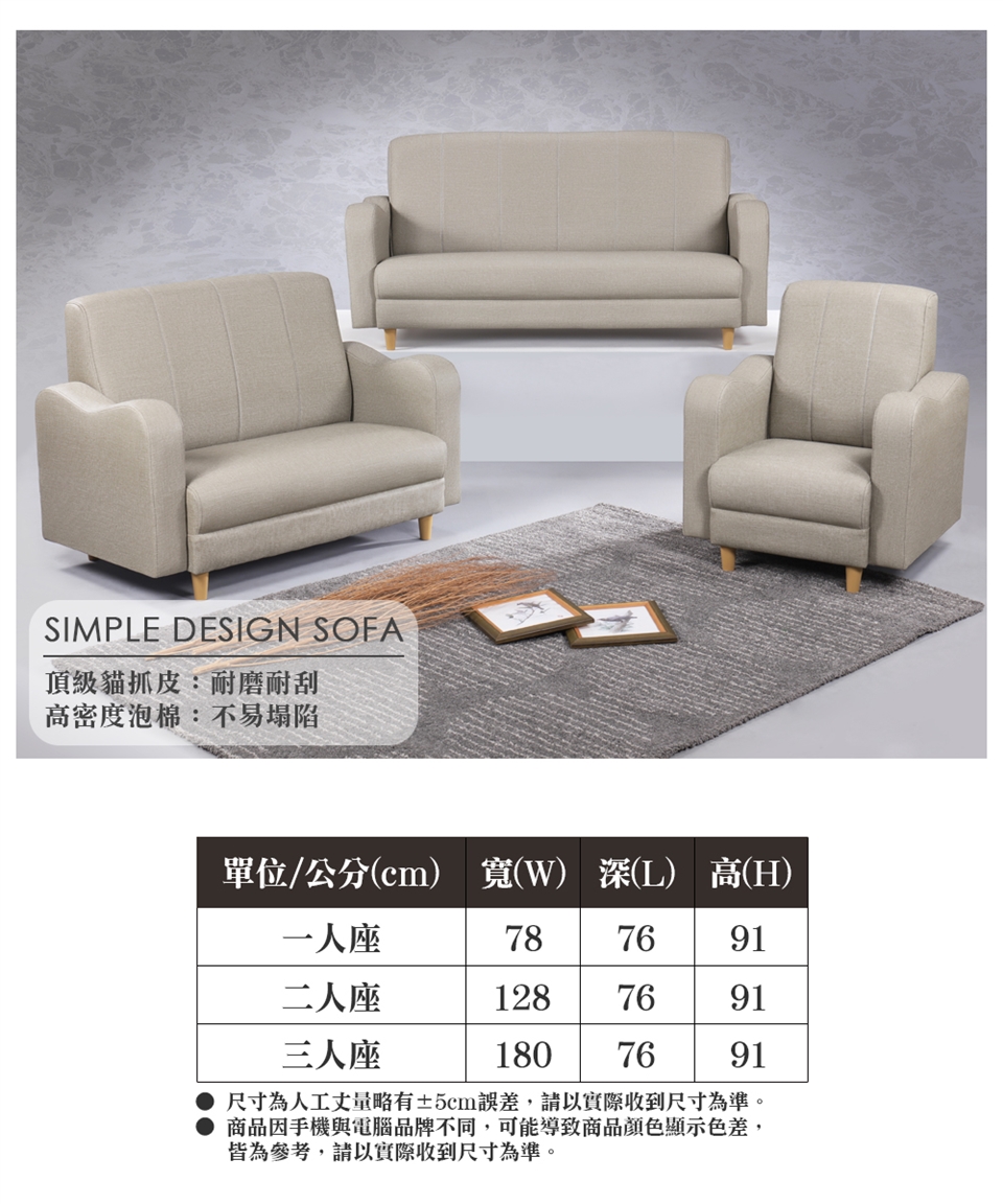 ※此賣場僅販售 烏瑞簡約圓弧貓抓皮沙發(單人座)※