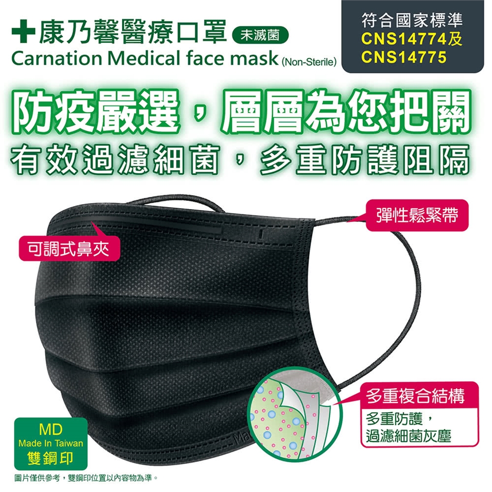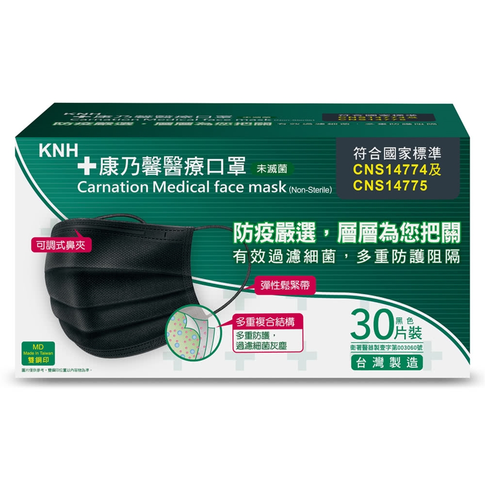 康乃馨醫療口罩一般耳帶30片盒裝(黑色) (未滅菌)  Carnation Medical Face Mask(Non-Sterile)
