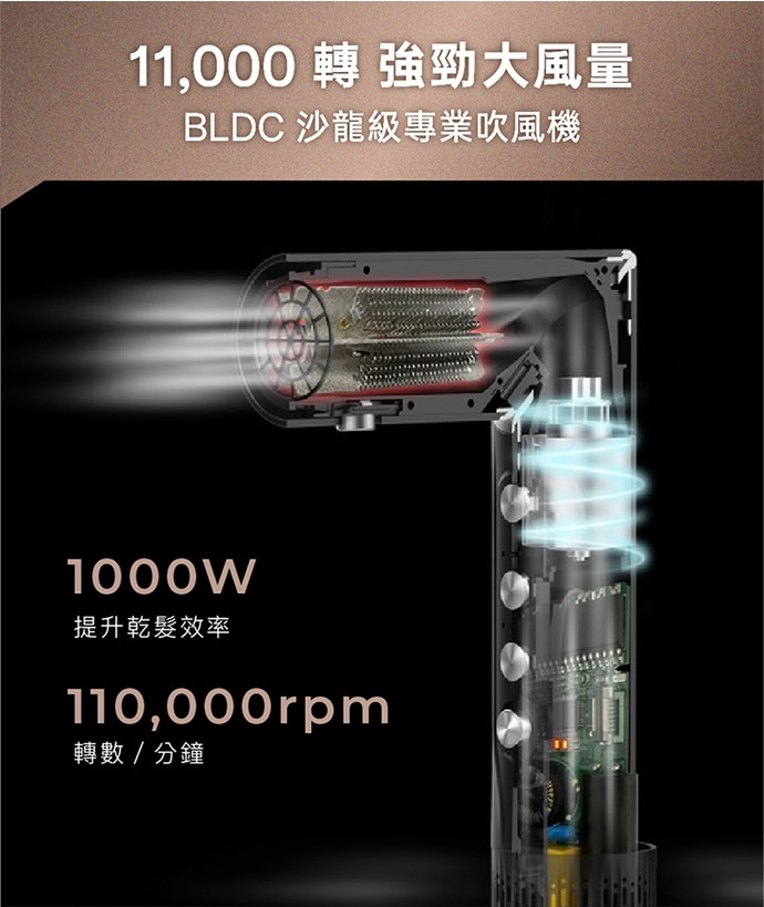 ★11,000轉強勁大風量提升乾髮效率