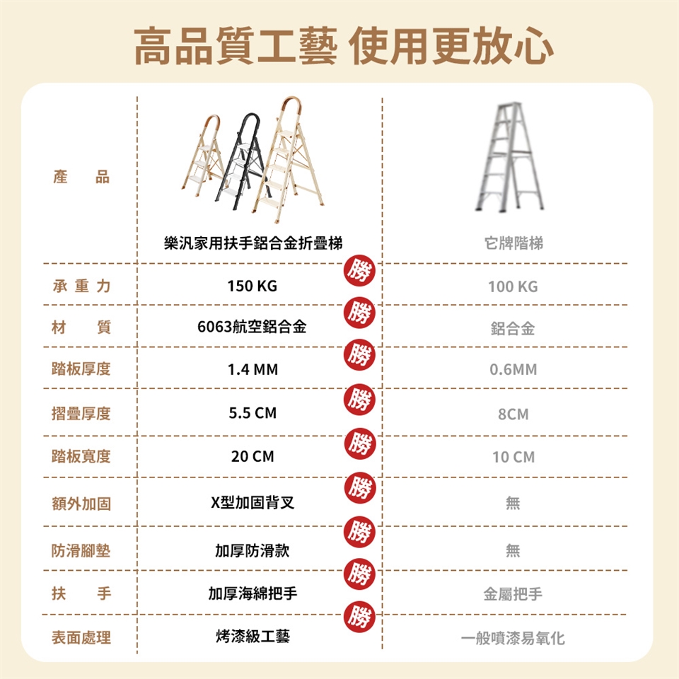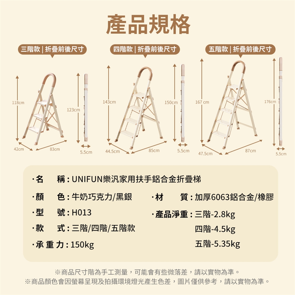 📍 UNIFUN 樂汎生活 家用扶手鋁合金折疊梯