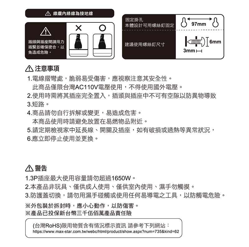 2.本產品非玩具、僅供成人使用、僅供室內使用、濕手勿觸摸。