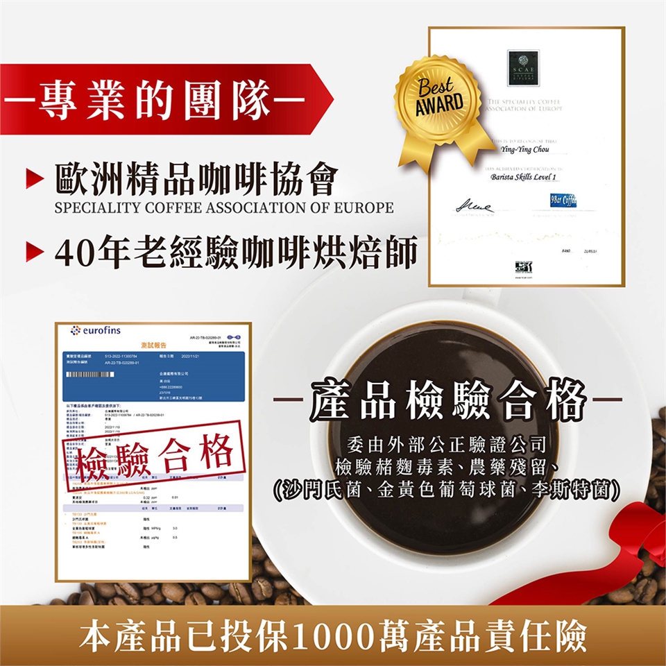 主商品: 璀璨金杯精品級咖啡豆150g/包*6包