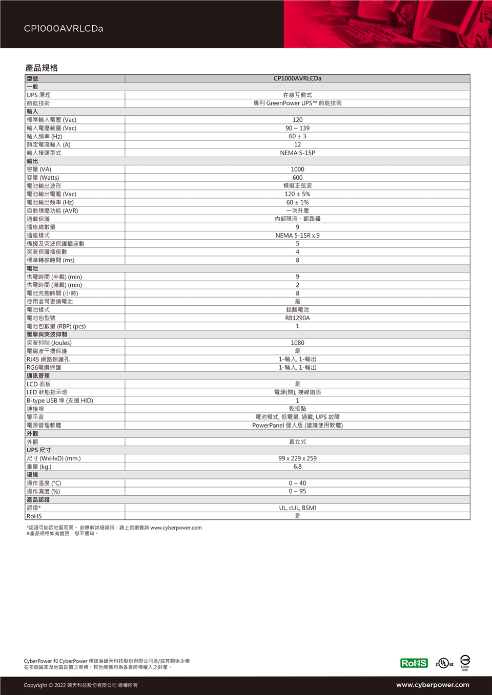 產品型錄規格如有更改,恕不另行通知