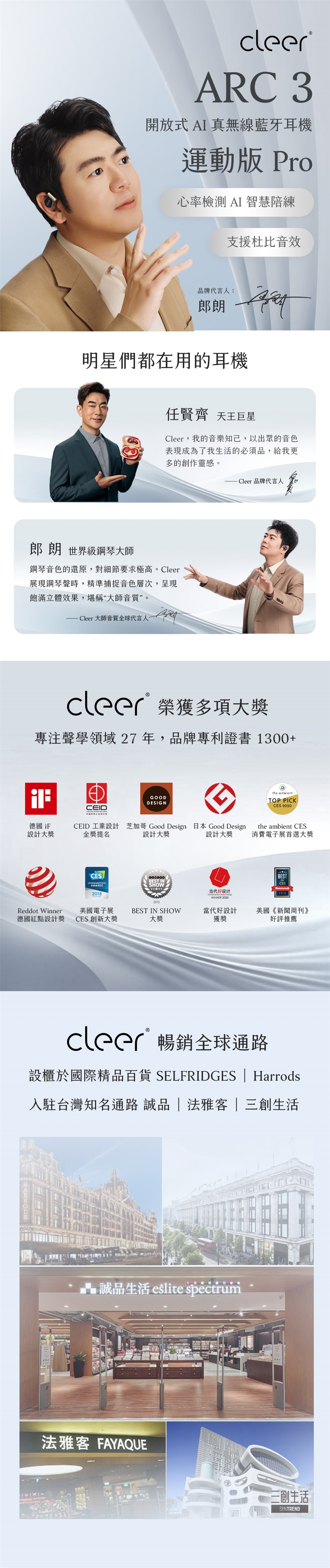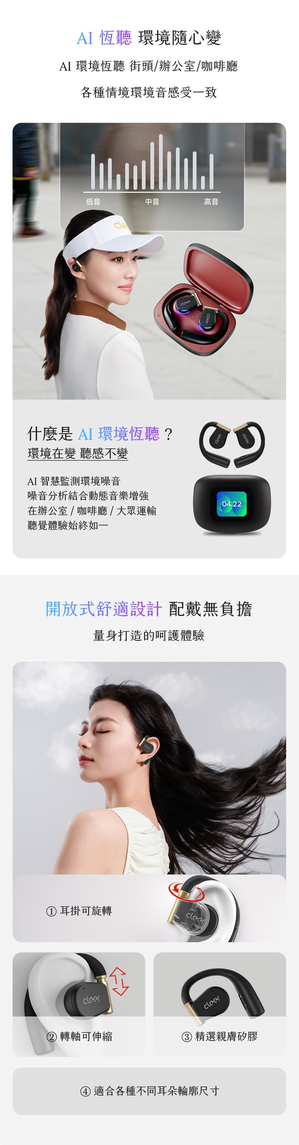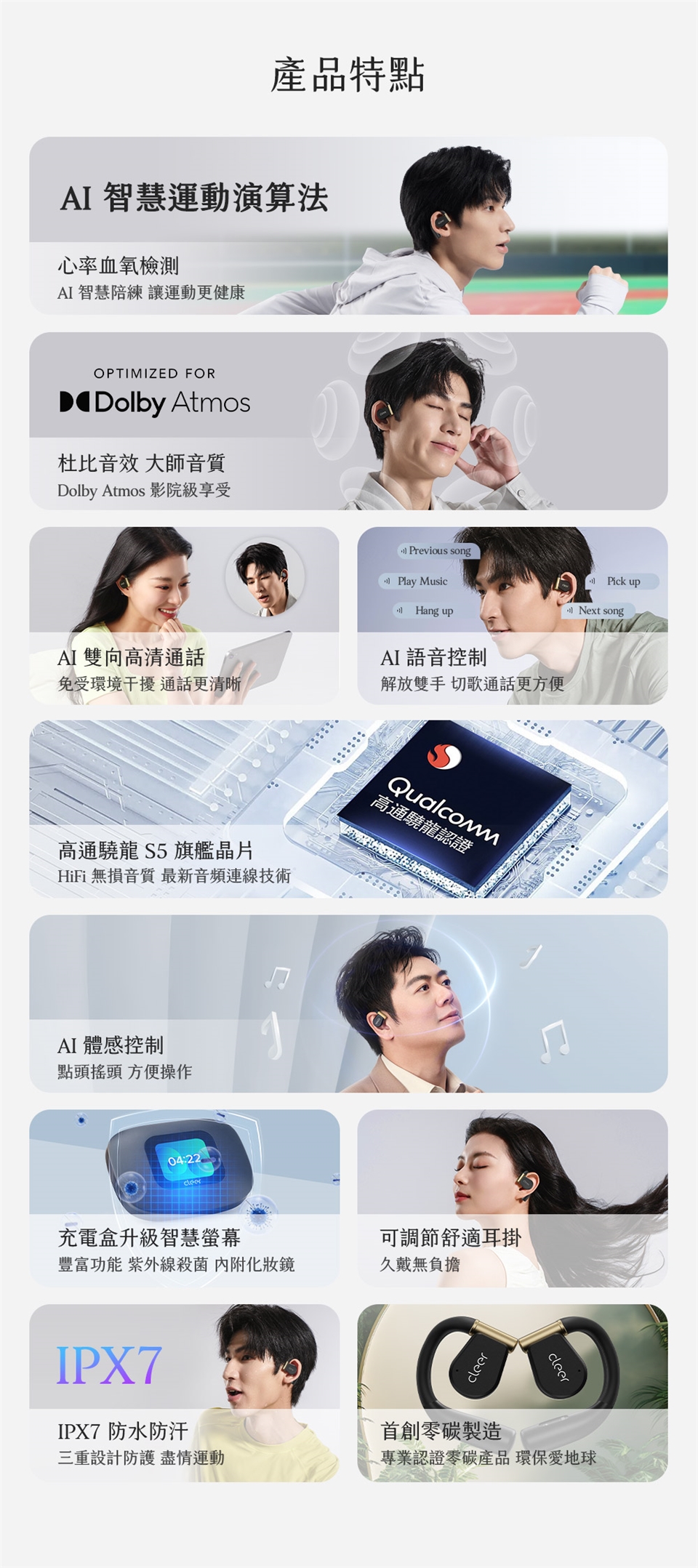 - 產品名稱:Cleer ARC 3 開放式AI真無線藍牙耳機(運動版Pro)