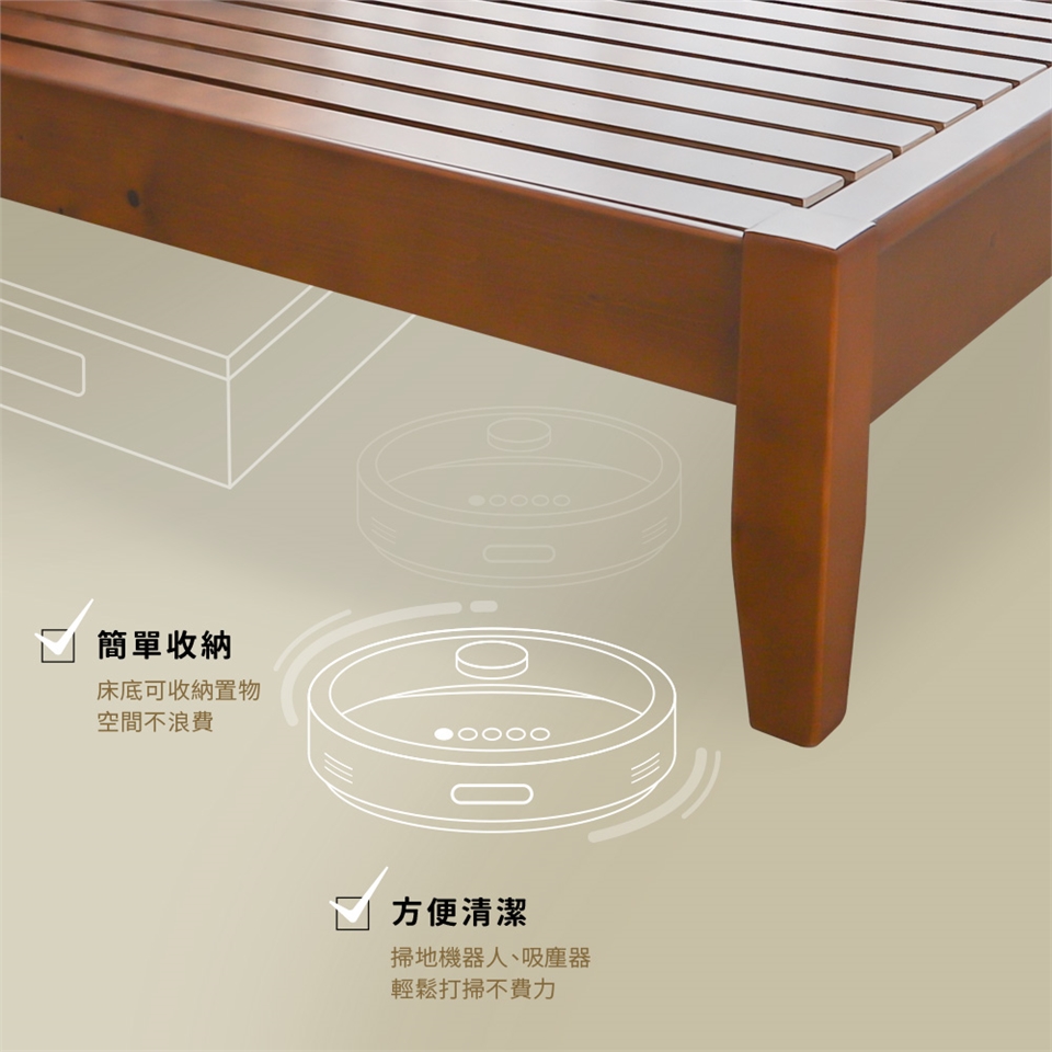 立式床架輕鬆打掃不費力,掃地機器人、吸塵器皆可直接進入打掃!
