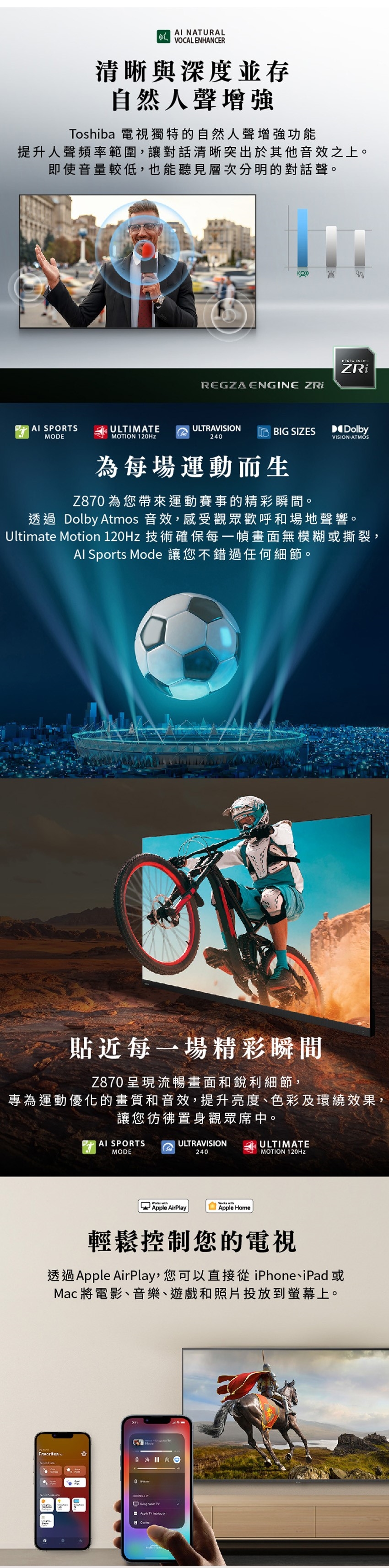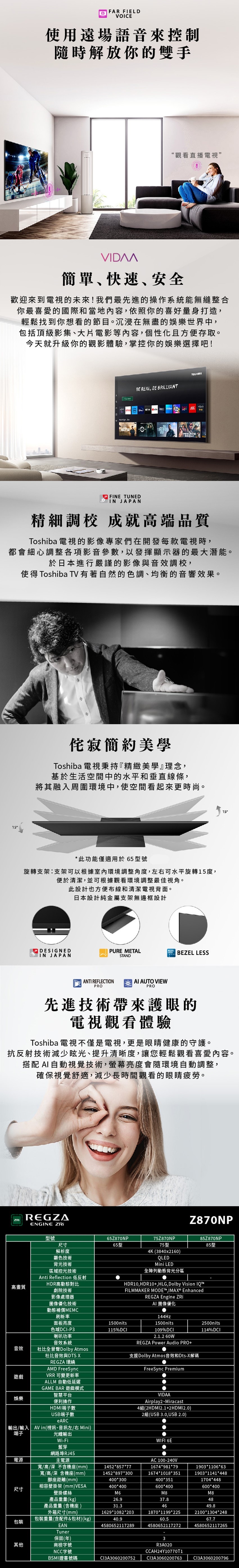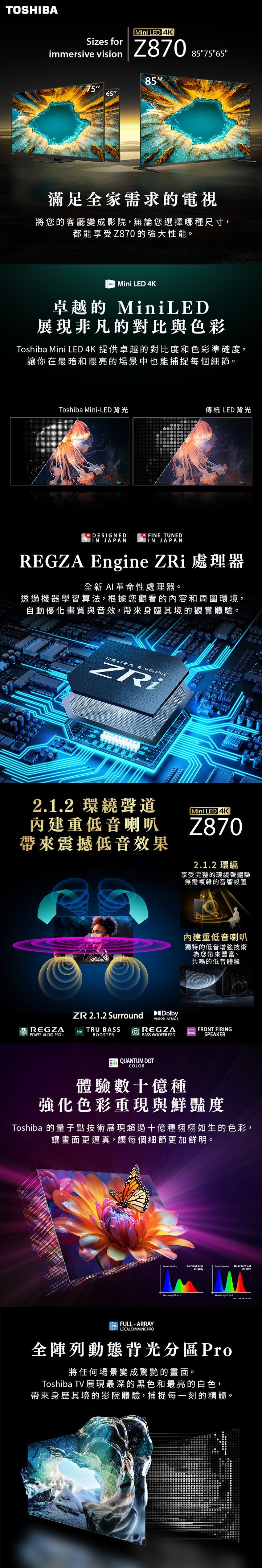 TOSHIBA 東芝 REGZA 85Z870NP 85型4K 144Hz QD Mini LED AirPlay2 智慧顯示器