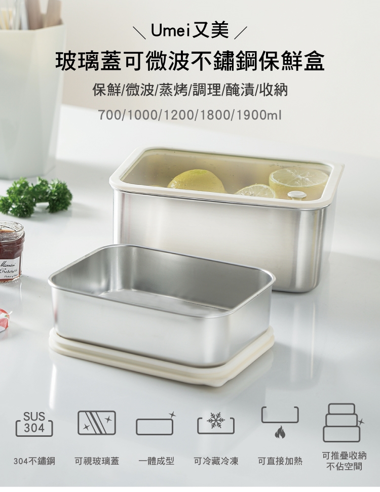 Umei又美 玻璃蓋可微波不鏽鋼保鮮盒