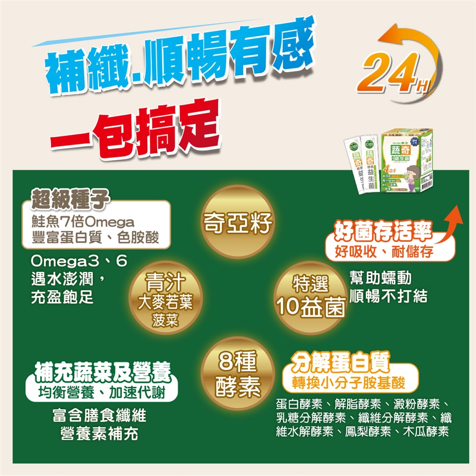 Q-life享活 蔬奇酵素益生菌(大麥若葉添加)好處多多